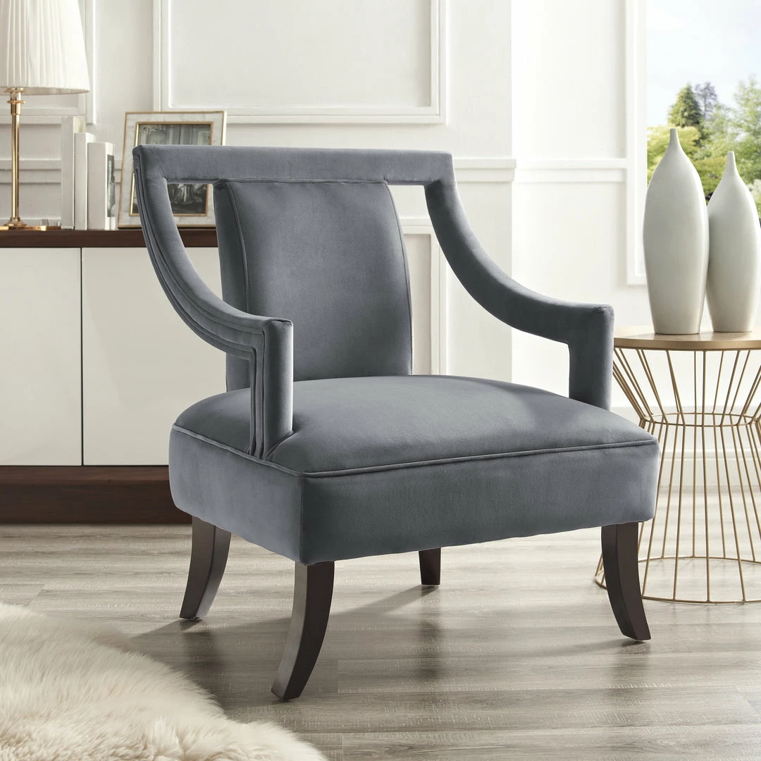 - MODERN DESIGN – With its open sides concept, this chair in modern and chic velvet upholstery adds a touch of freshness to your home decor