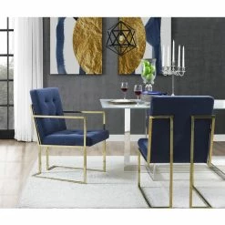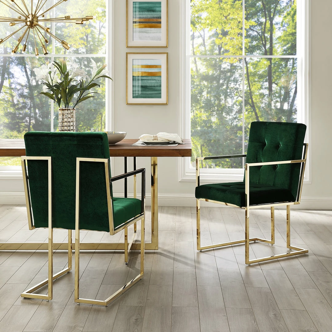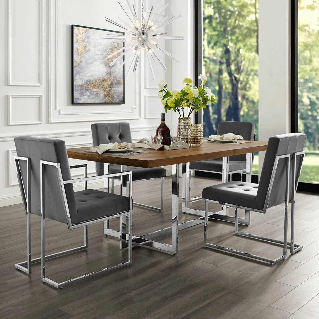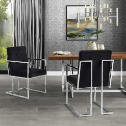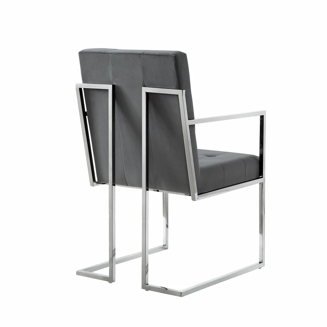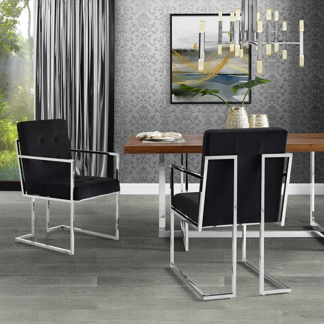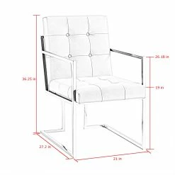 - ATTRIBUTES – Button Tufted, Square Arm, Chrome Frame