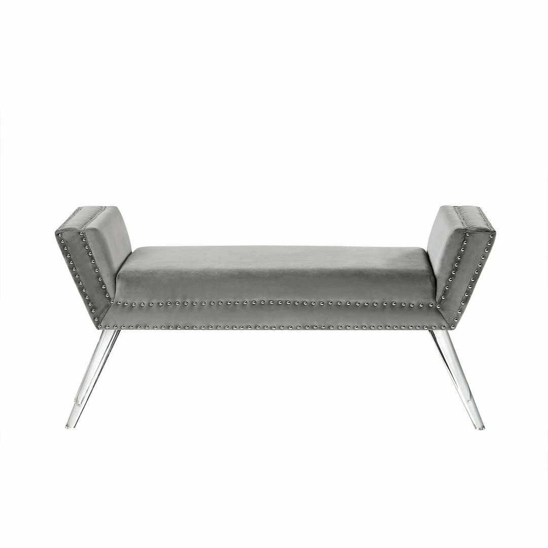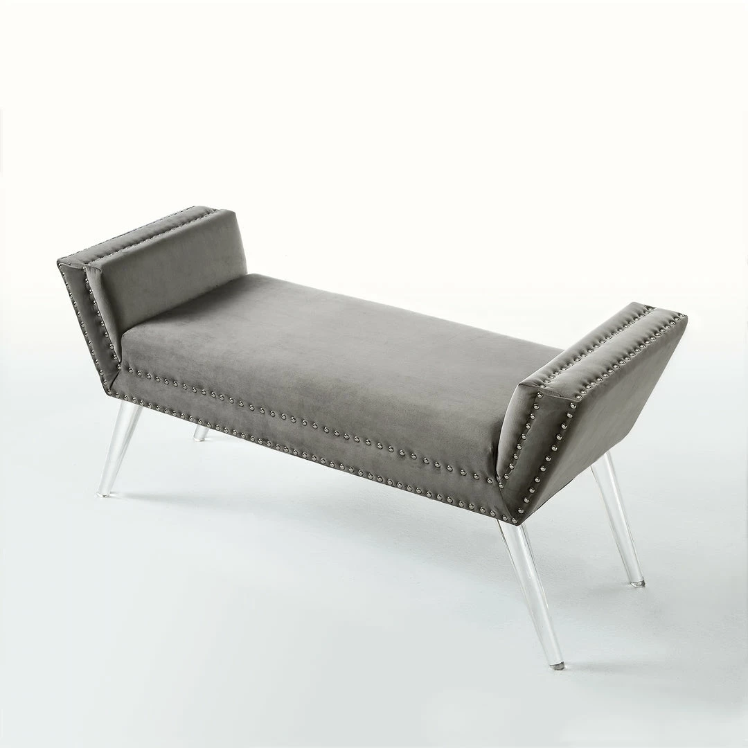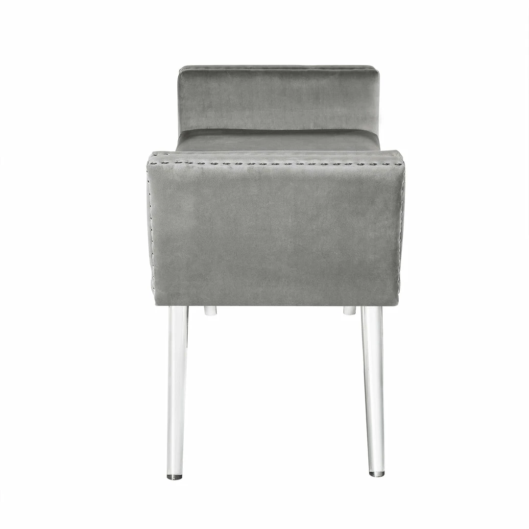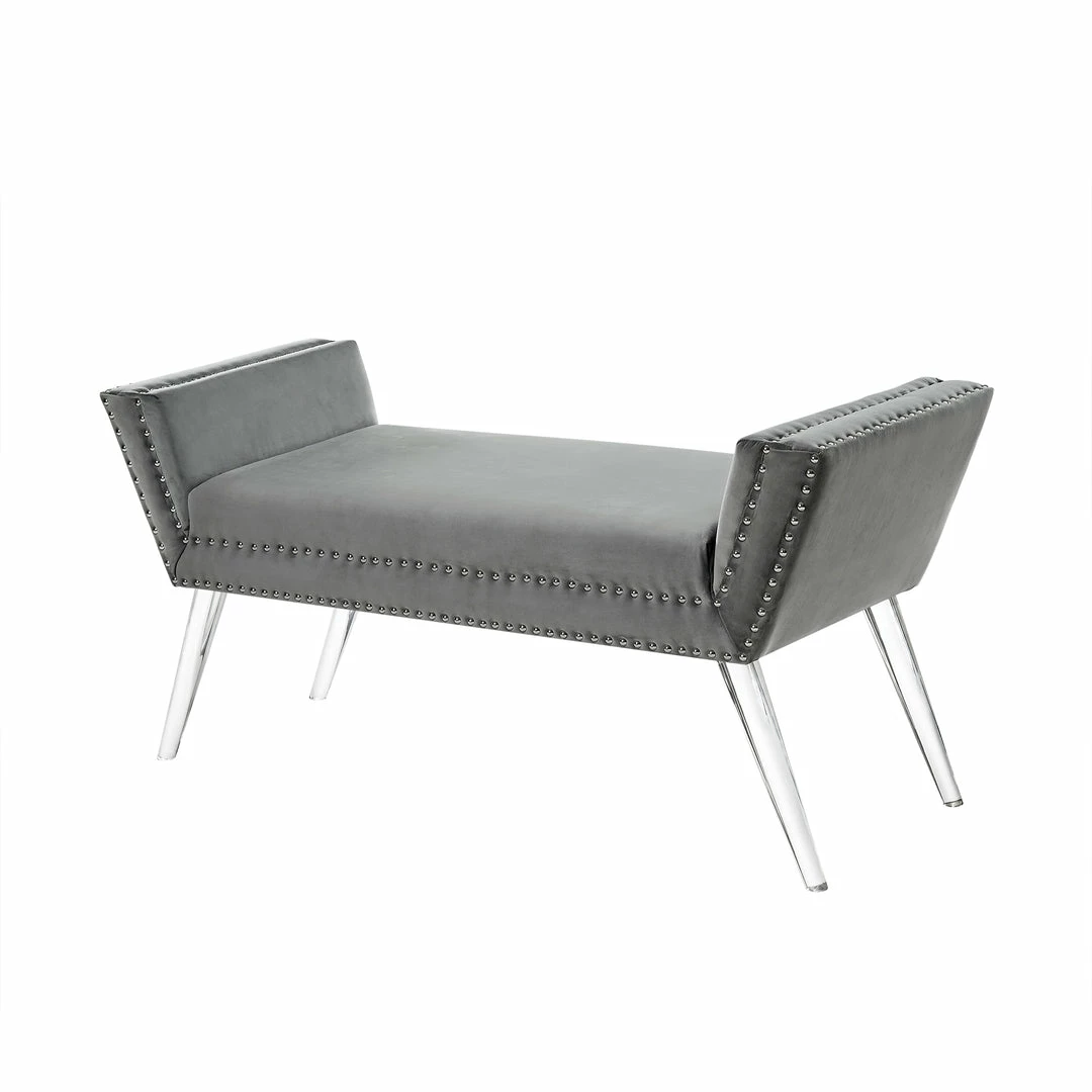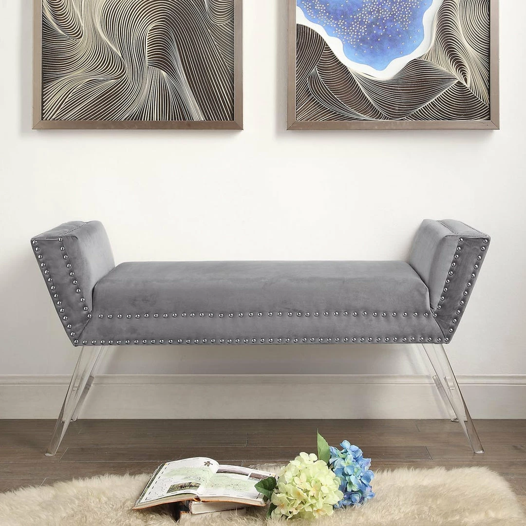 - ELEGANT DESIGN – Featuring lush velvet upholstery accented with nailhead trim and clear acrylic legs, this traditional style bench w/ modern appeal really makes a statement.