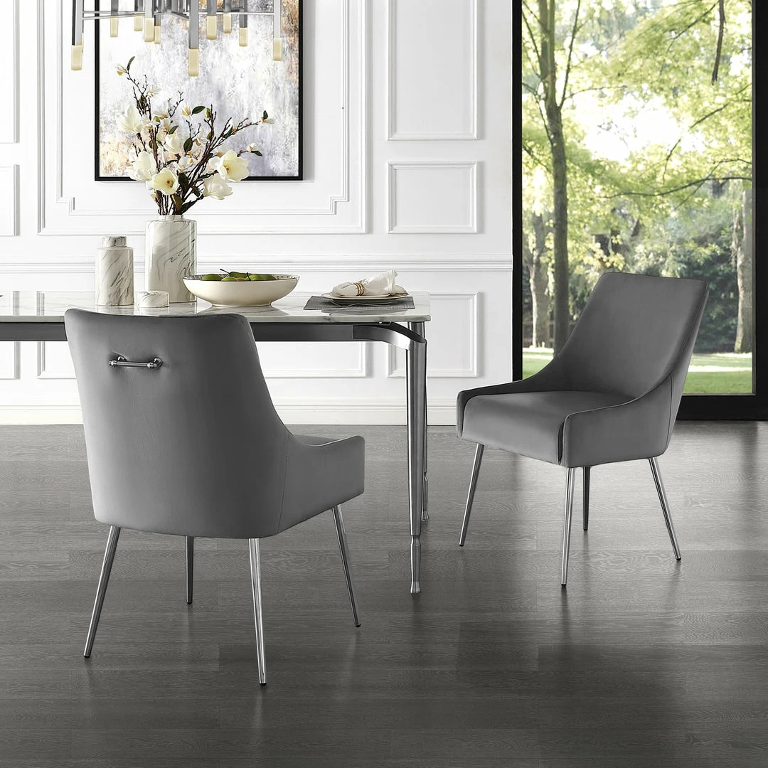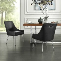 - BEAUTIFUL UPHOLSTERY – This set of two chairs features Leather PU/velvet upholstery in a choice of color, designed to dress up any dining space. Armless design is a huge space saving option, allowing you to tuck these dining chairs into table when not in use.