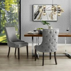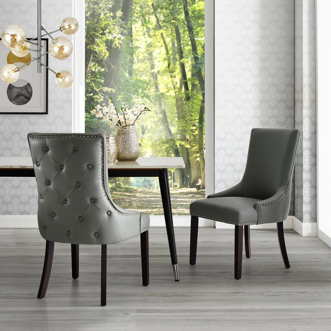 - SET OF 2 – Sold as a set of 2 matching chairs. Pair it with any dining table to add a luxurious and elegant look. Designed to dress up any dining space, this set of two chairs features leather PU, velvet or linen upholstery in a choice of color.