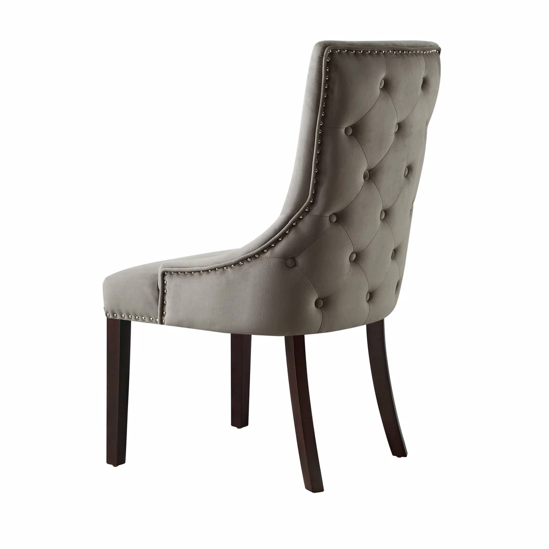 - BUTTON TUFTED – A classic shape and diamond button tufting detail in the back of the seat in leather PU, velvet or linen upholstery makes these chairs incredibly stylish and offers superior comfort. Featuring chic and comfortable vintage hourglass delicate silhouette with added charm to the flared back espresso finish legs, these chairs will be your guests’ favorites.