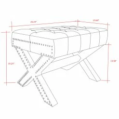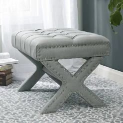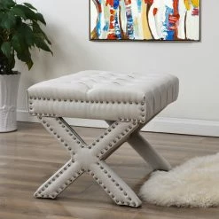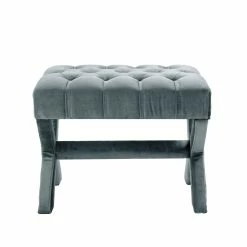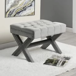 - ELEGANT DESIGN – Traditional style Ottoman w/ Modern appeal, Handcrafted Upholstered tufting with soft velvet fabric, Stylish Solid birch X-Leg design.