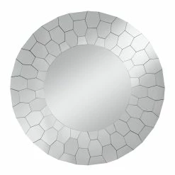 - MOSAIC STYLE – Radiant light is delivered from the sunburst design of this modern accent mirror. Framed in a mosaic spray of cut glass circles on the outside, the beveled mirror will beautifully brighten up any wall space.
