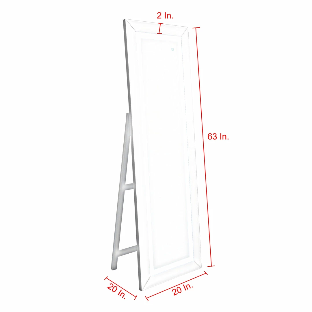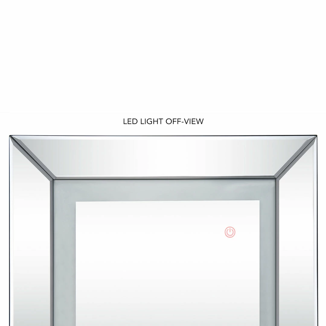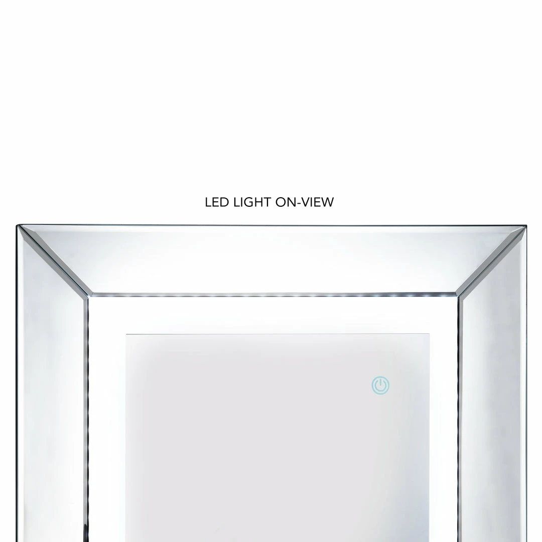 - ATTRIBUTES – LED Lights, Mirrored Border, Full Length, Plug