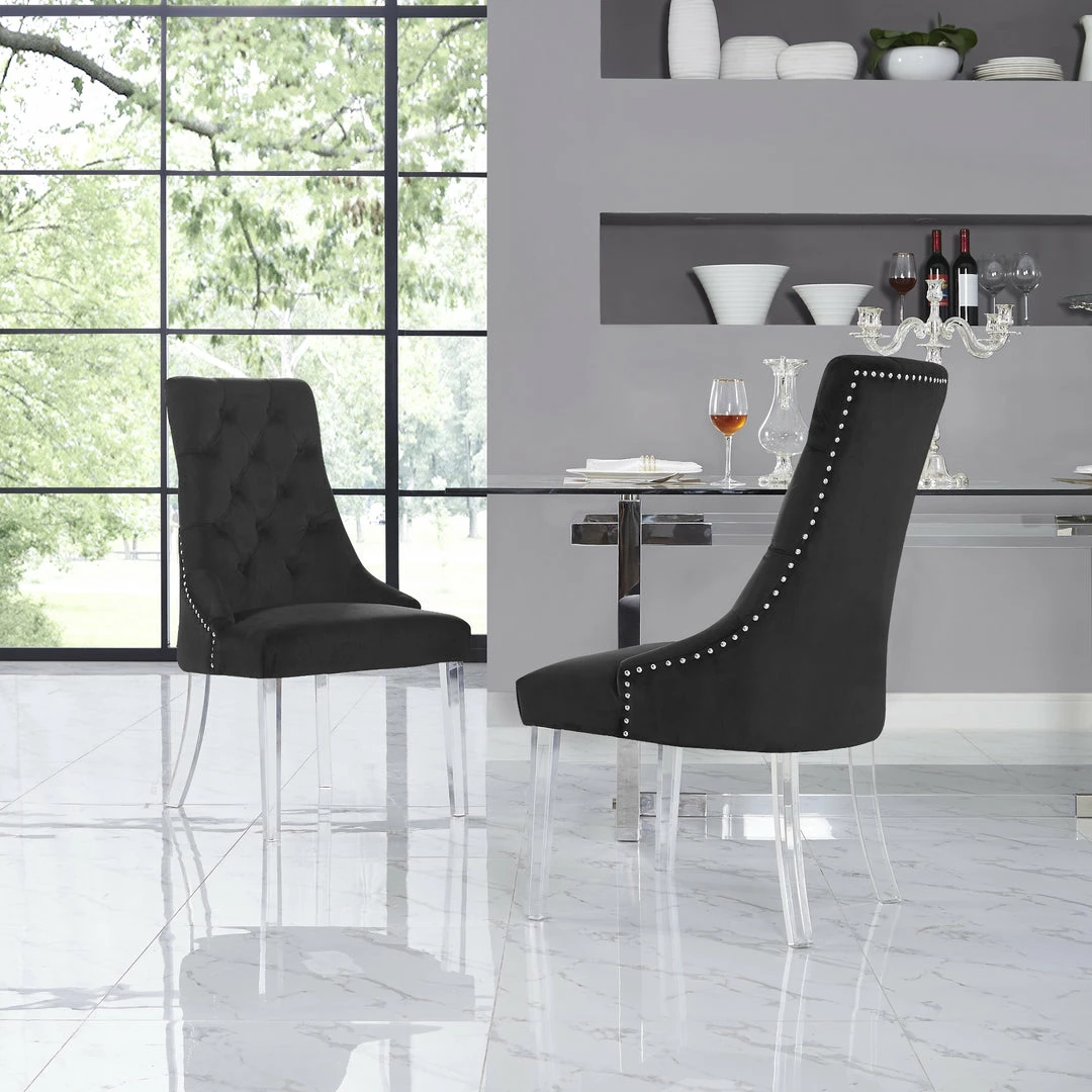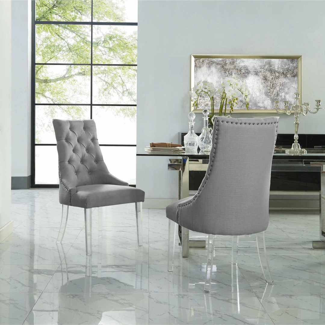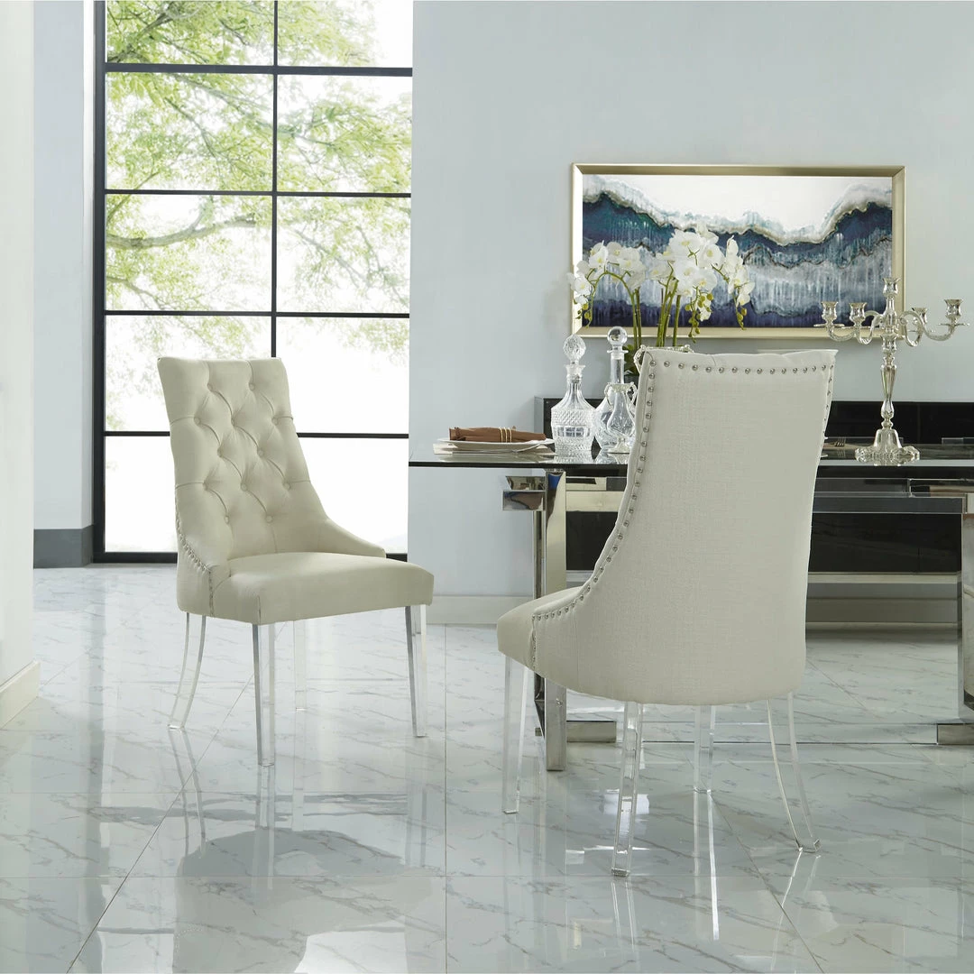 - GLAM lucite acrylic legs and handmade nailhead trim