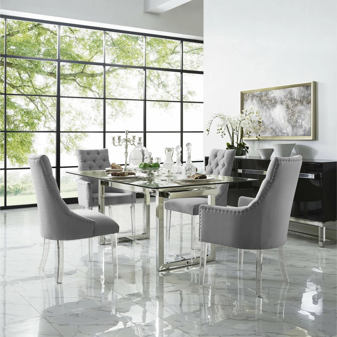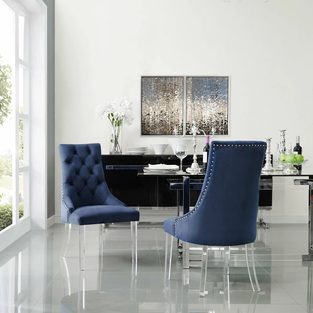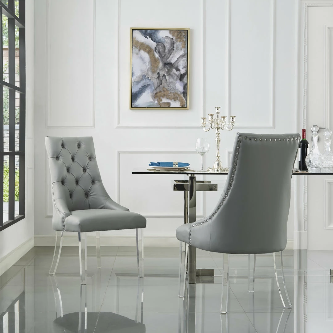 - GLAM lucite acrylic legs and handmade nailhead trim