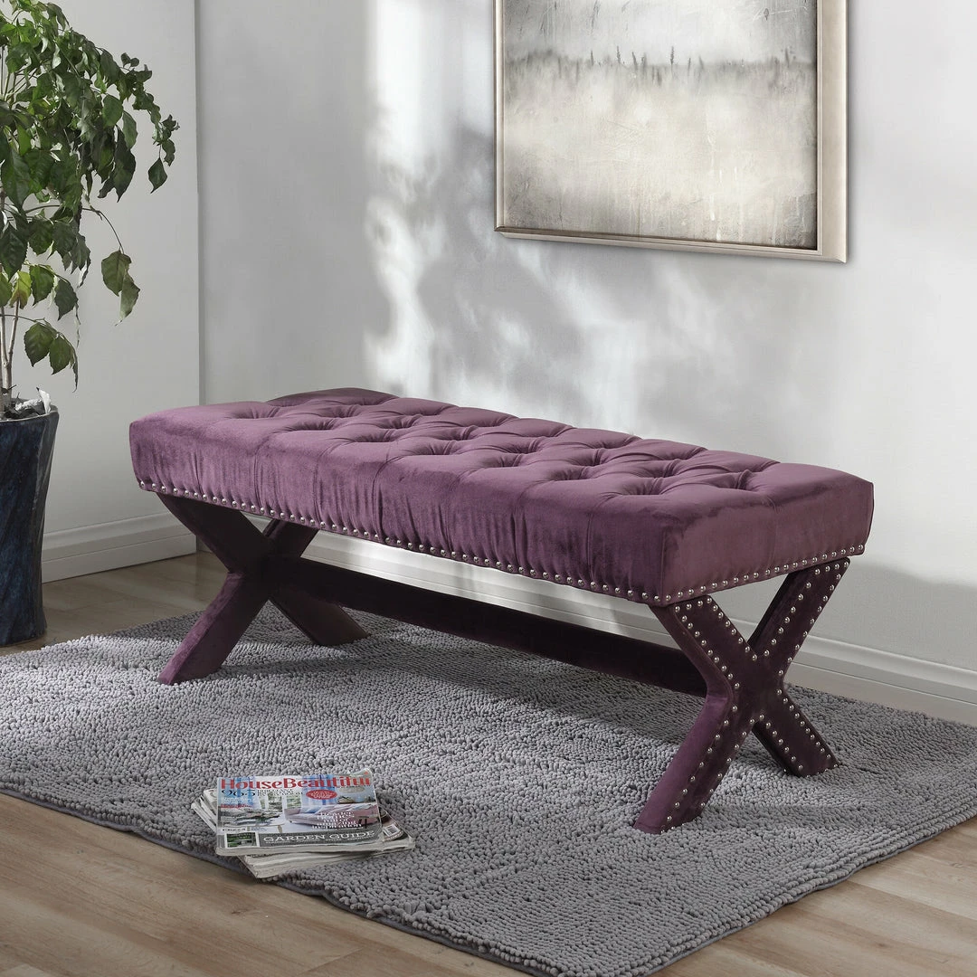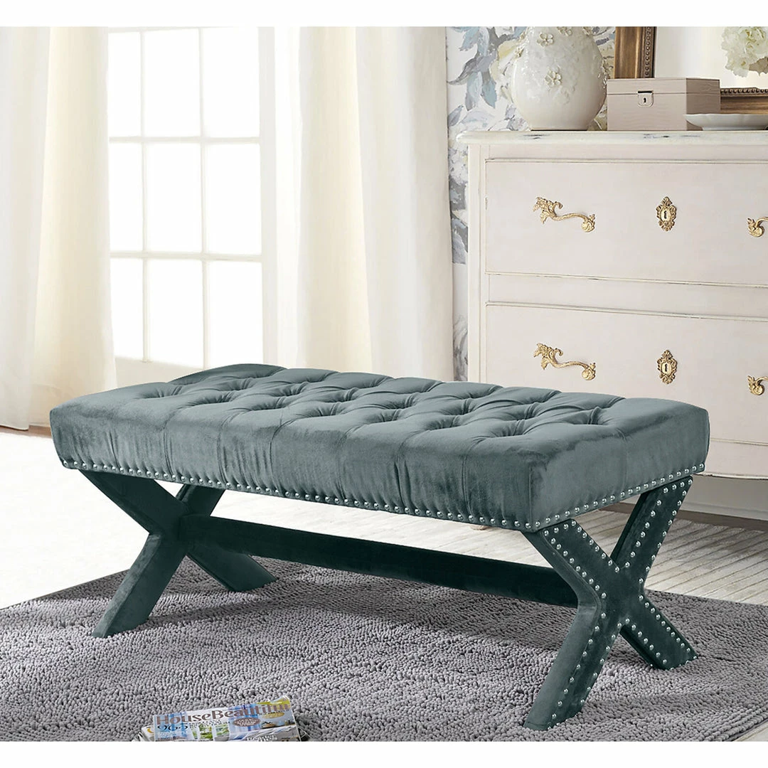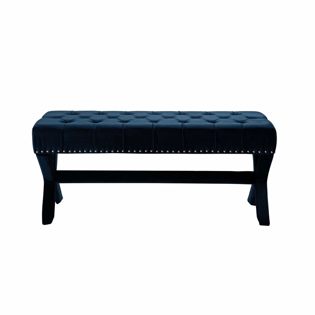 - ELEGANT DESIGN – Traditional style Bench w/ Modern appeal, Handcrafted Upholstered tufting with soft velvet fabric , Stylish Solid birch X-Leg design.