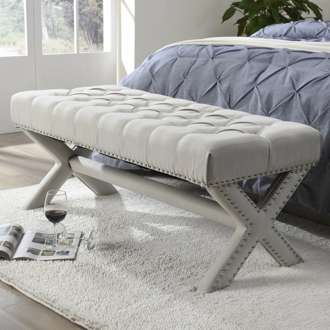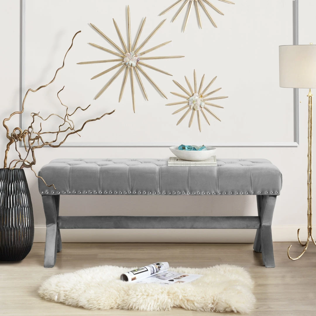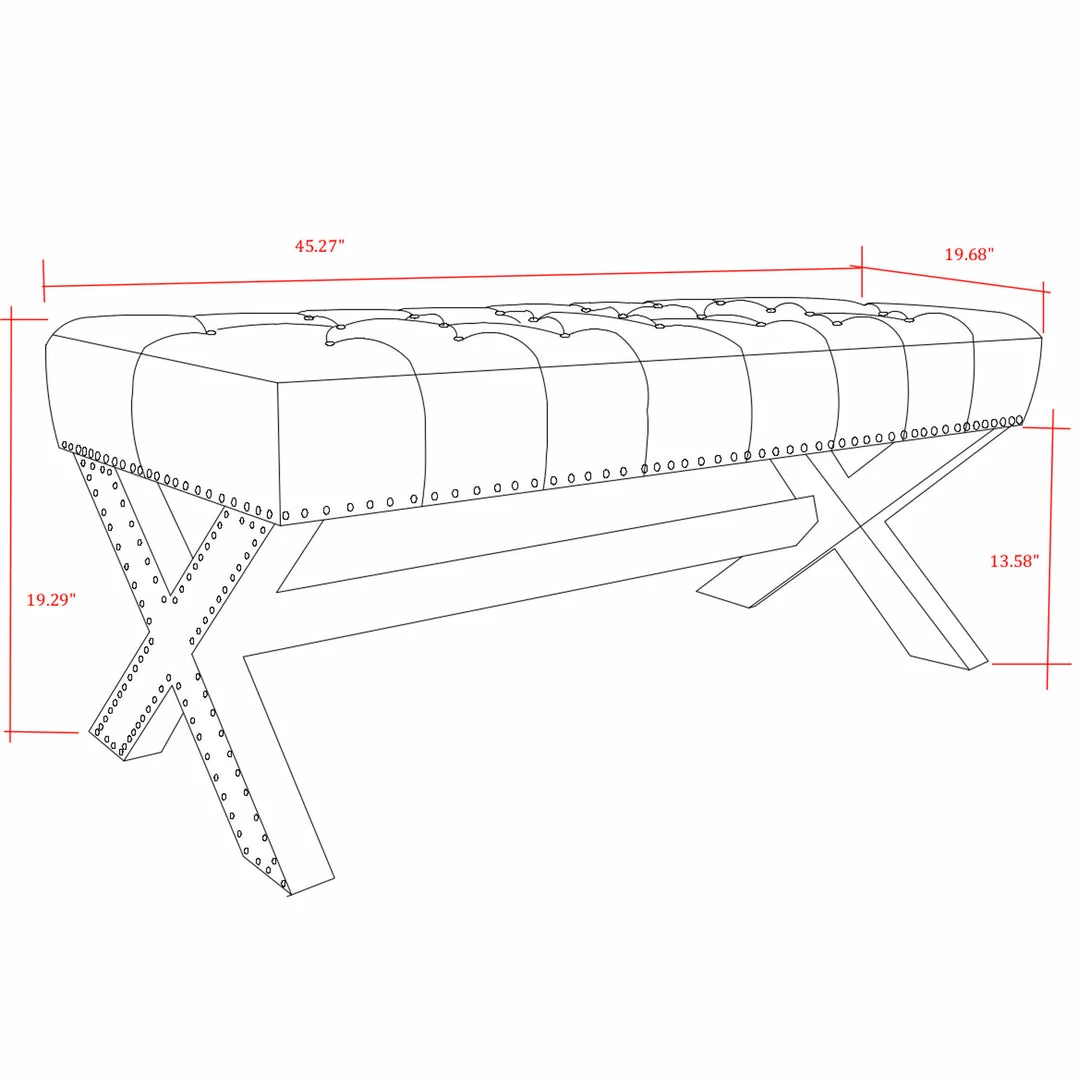 - ELEGANT DESIGN – Traditional style Bench w/ Modern appeal, Handcrafted Upholstered tufting with soft velvet fabric , Stylish Solid birch X-Leg design.