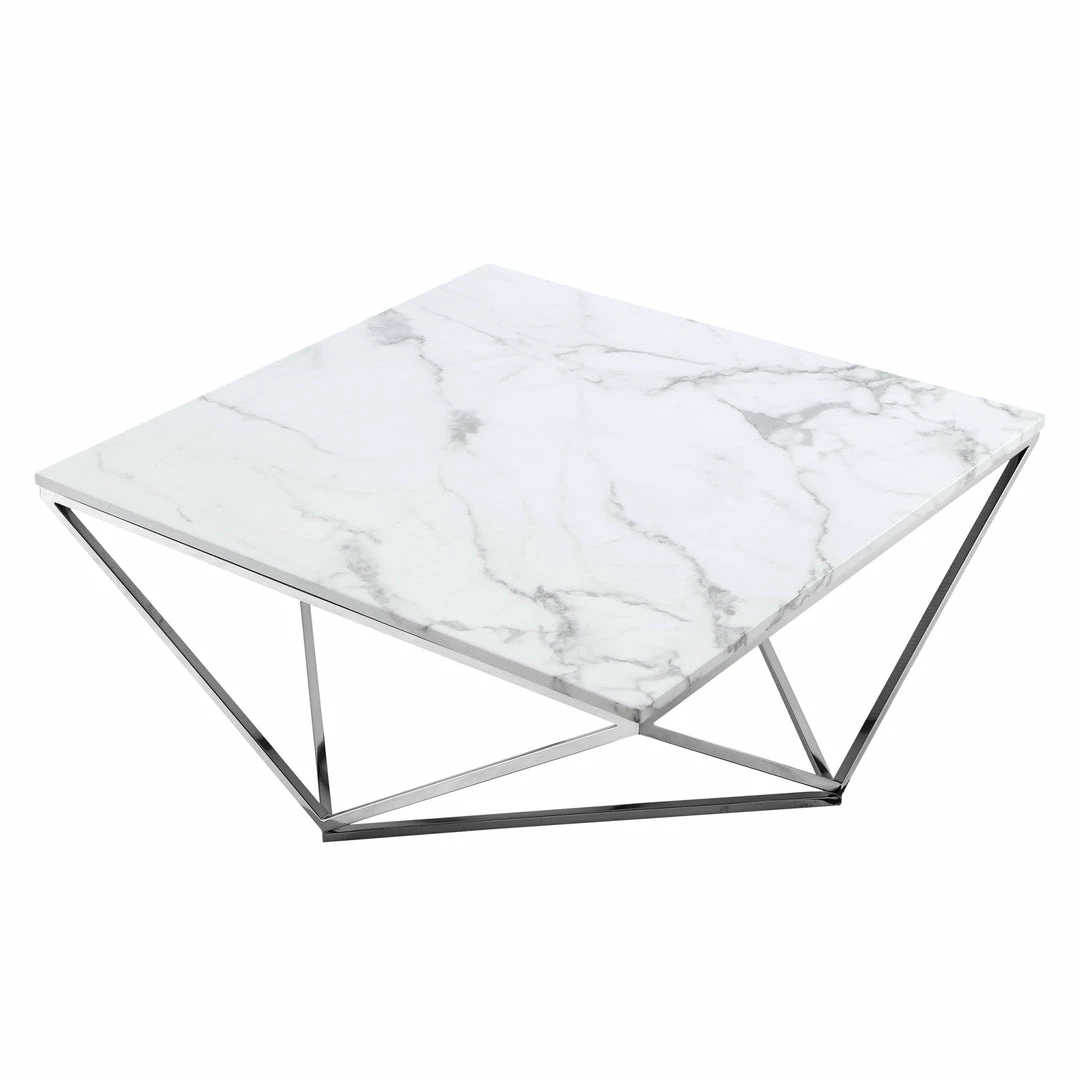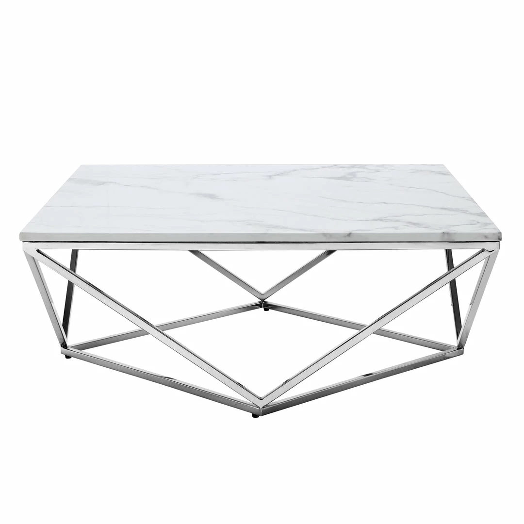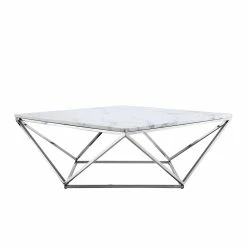 - ELEGANT DESIGN – This unique luxe coffee table with polished metal base and white marble top infuses an exquisite accent to your main furniture to create that modern cozy atmosphere in your home and enhances the surrounding décor