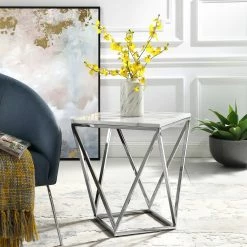 - STURDY CONSTRUCTION – This stylish side table is made of iron with sturdy construction that guarantees years of enjoyment of this beautiful room decor. With a geometric leg whimsical silhouette, it speaks to an effortless design concept. Perfect for a contemporary space, these tables deliver personality and sophistication