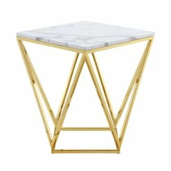 - ELEGANT DESIGN – This unique luxe end table with polished metal base and white marble top infuses an exquisite accent to your main furniture to create that modern cozy atmosphere in your home and enhances the surrounding décor