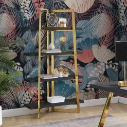 - ELEGANT DESIGN – This unique open design etagere bookcase/bookshelf with polished stainless steel frame and high gloss surface finish delivers an on-trend mixed material look with a touch of glamour.