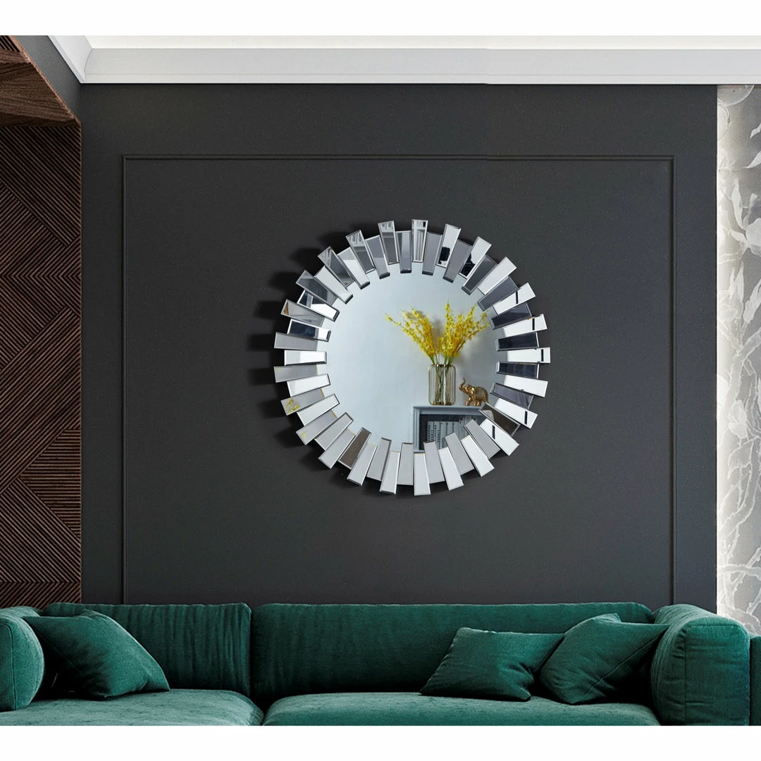 - GLAM DESIGN – This gorgeous glam round wall accent mirror in sunburst design draws inspiration from a variety of different styles to create a complete and unique accessory for any room. It is sure to catch the attention of your family and friends.
