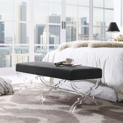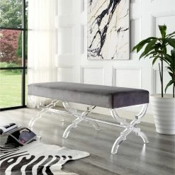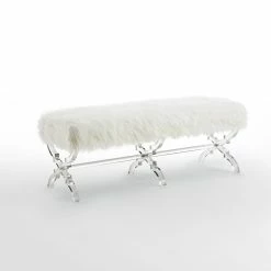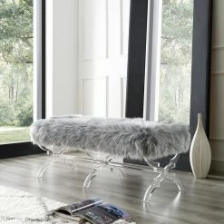 - ELEGANT DESIGN – Featuring faux fur upholstery and acrylic translucent legs, this glamorous style bench w/ modern appeal really makes a statement and brings luxurious and sophisticated look.
