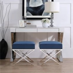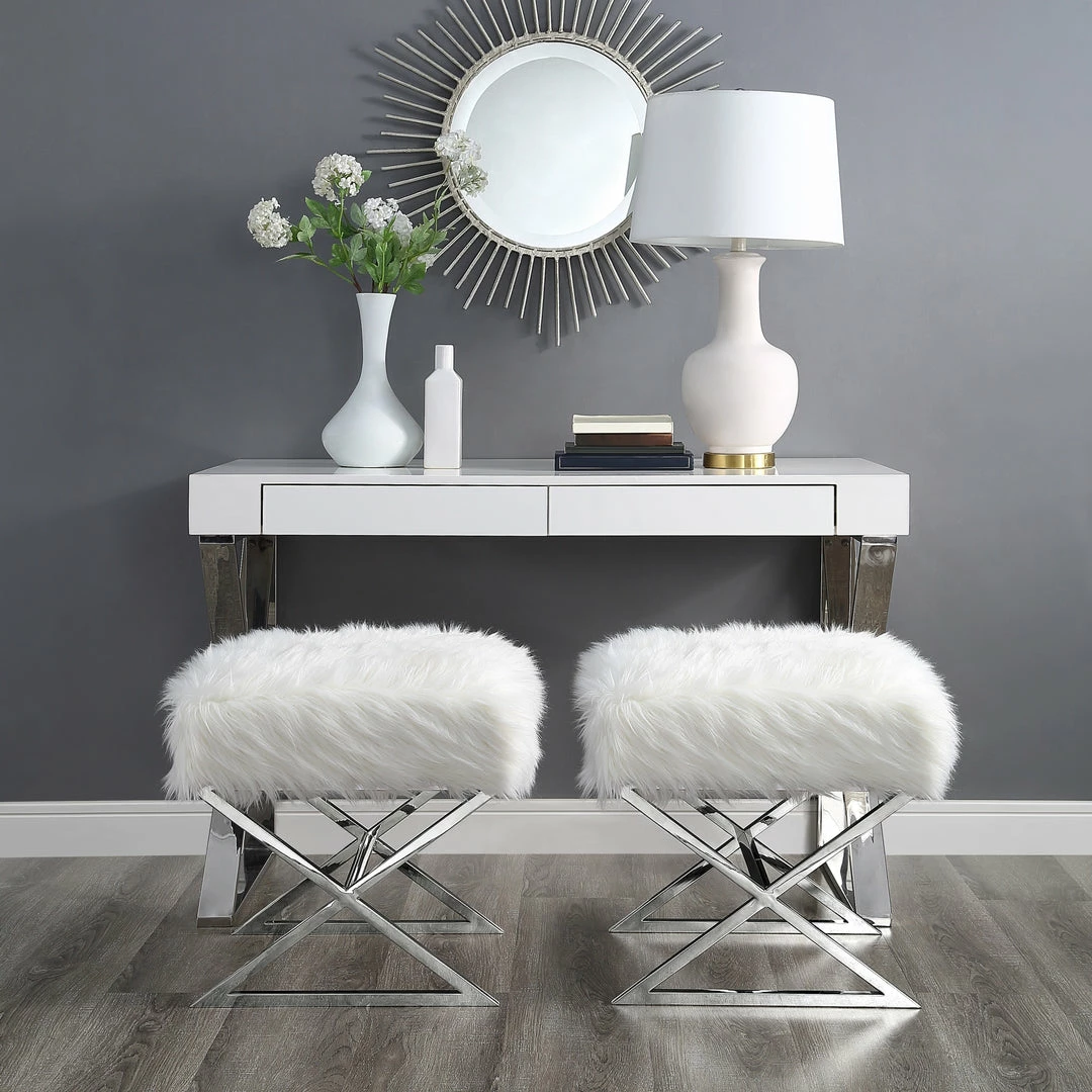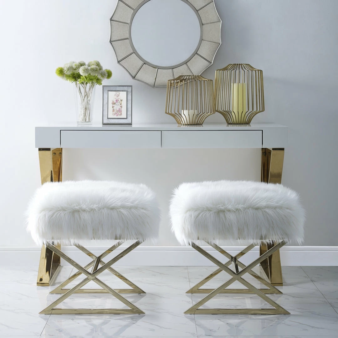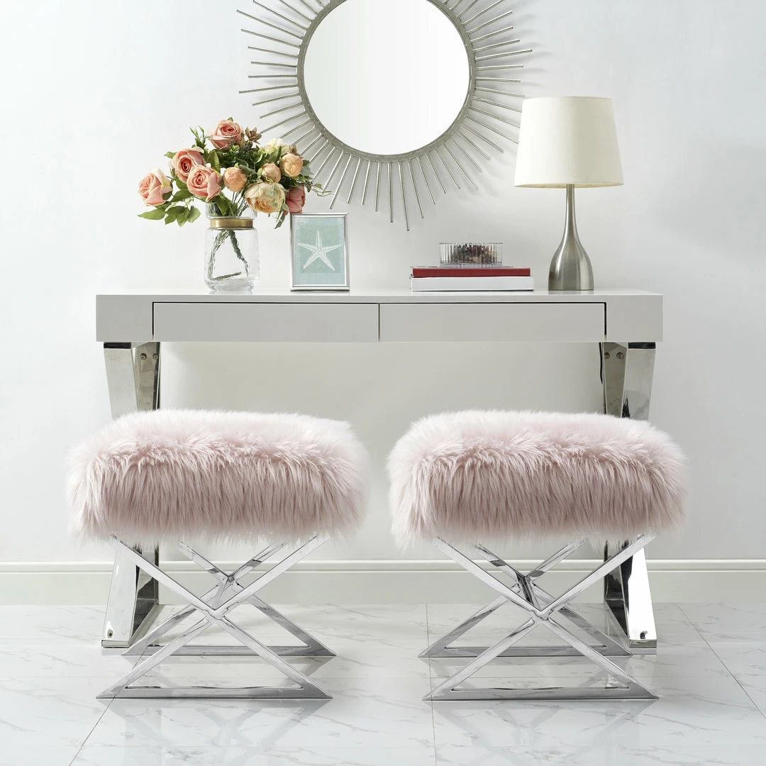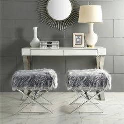 - ELEGANT DESIGN – Featuring faux fur upholstery and stainless steel metal legs, this glamorous style ottoman w/ modern appeal really makes a statement and brings luxurious and sophisticated look. Sold as 1 piece