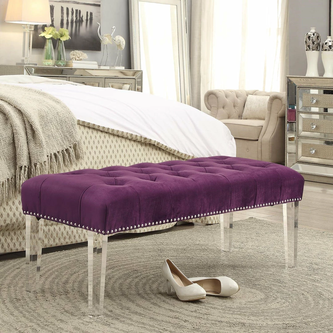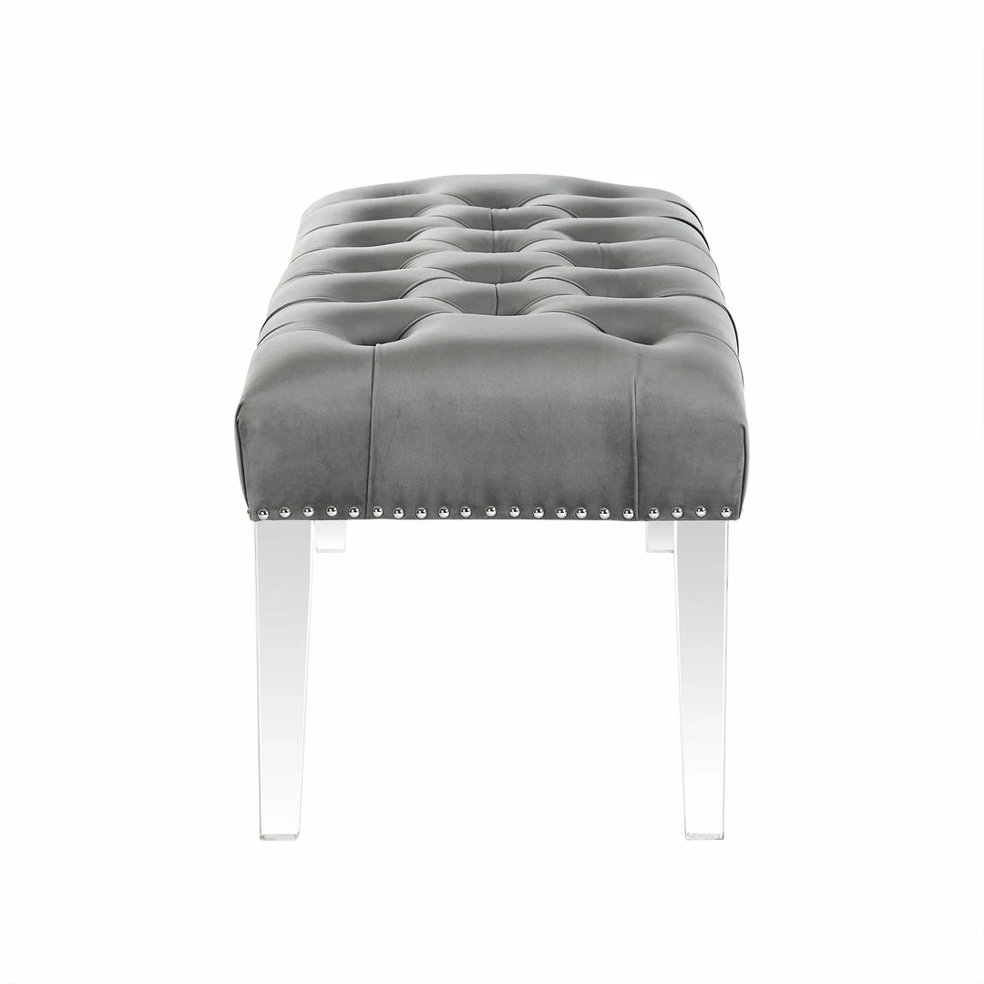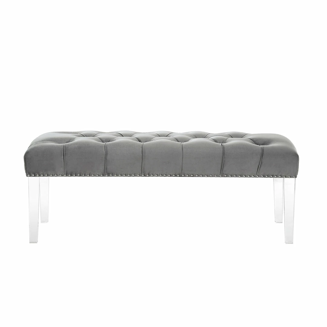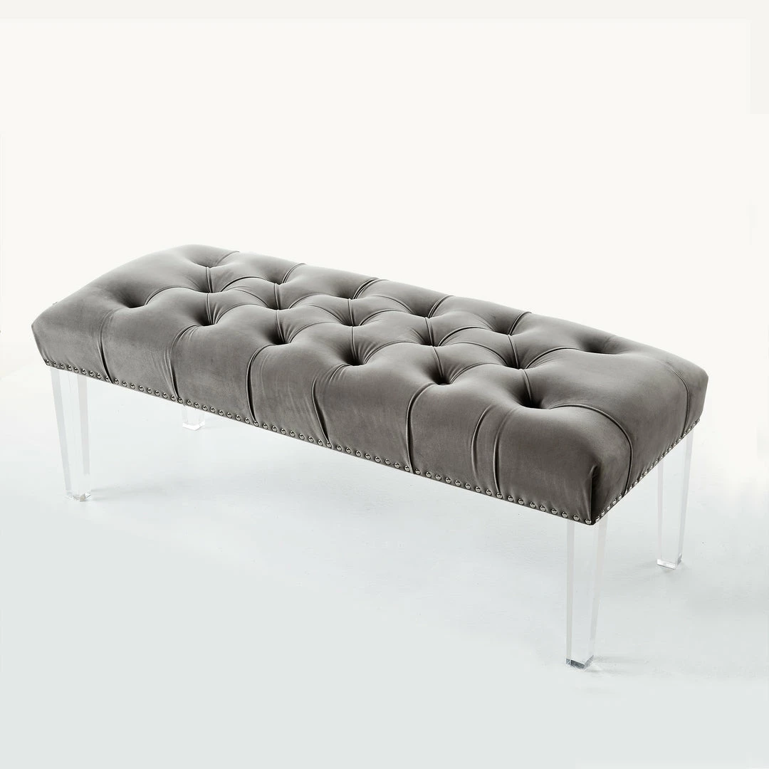 - ATTRIBUTES – Button Tufted, Silver Nailhead Trim, Clear Acrylic Legs