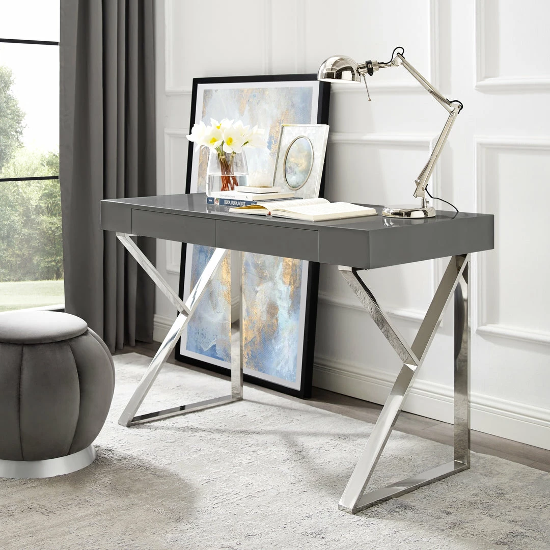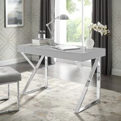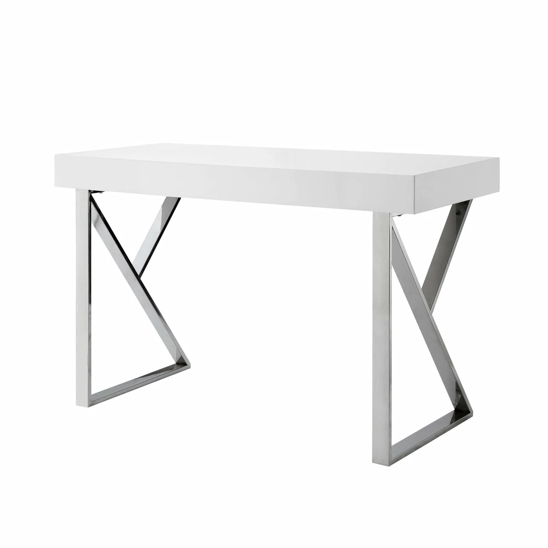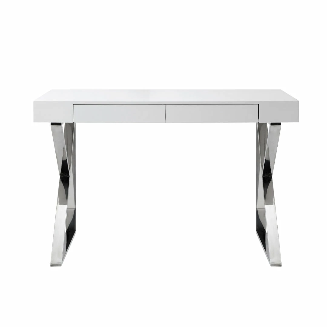 - CONTEMPORARY DESIGN – This unique luxe high gloss desk is ideal for your home office. The stylish kind of criss-cross design stainless steel shiny legs provide sturdy support while the glossy finish adds glamorous style. This practical fashionable desk offers ample surface room, creating that modern cozy atmosphere in your home and enhancing the surrounding décor