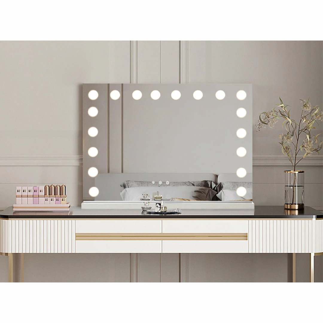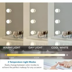 - CUSTOMIZABLE – A complete vanity station that comes loaded with features. Easy touch screen control adjusts luminosity to low, medium or bright light for flawless makeup. 3 temperature light modes provide you with warm, day, cool light options.