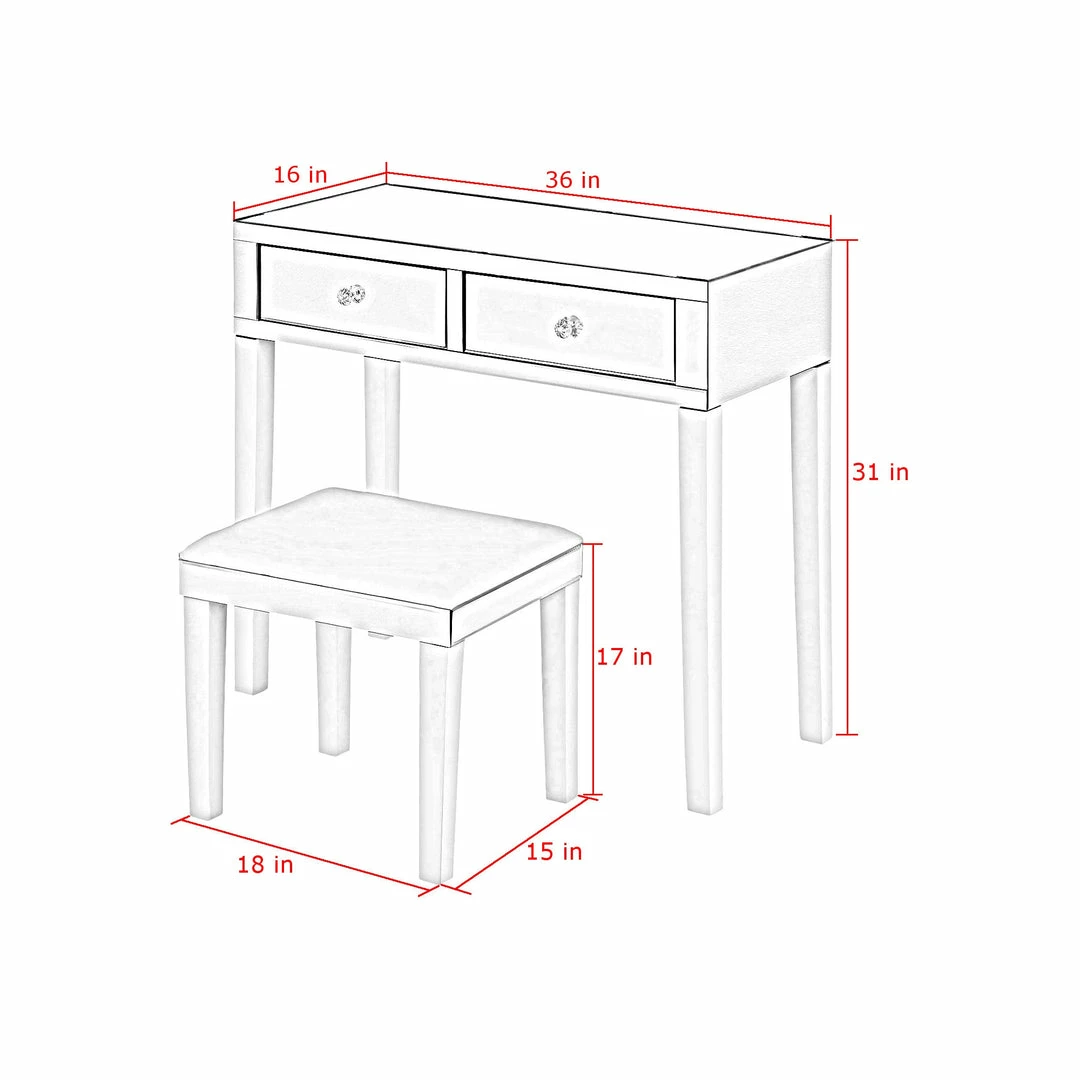 - DECENT SIZE – Vanity – 35.4″L x 15.7″D x 30.7″H. Stool – 17.7″W x 15″D x 16.9″H