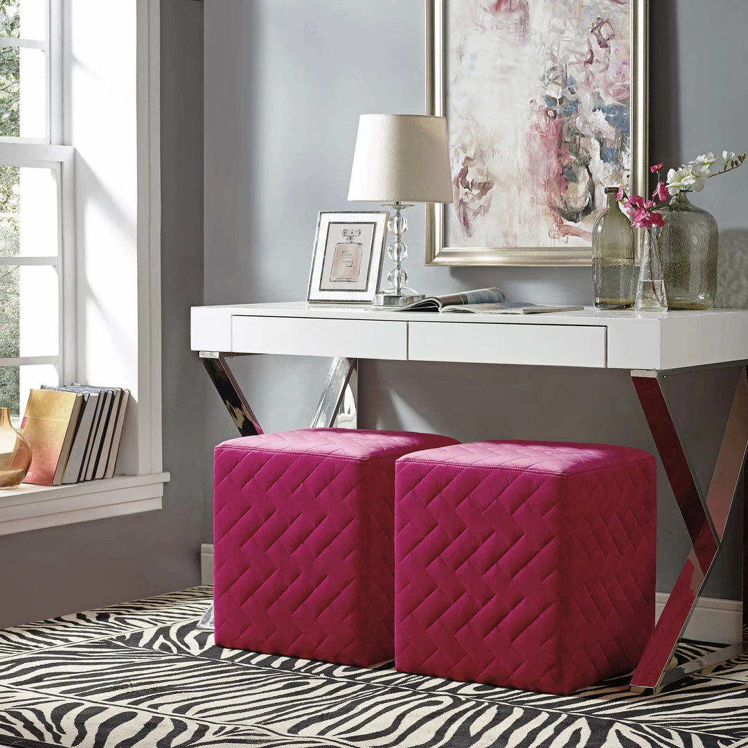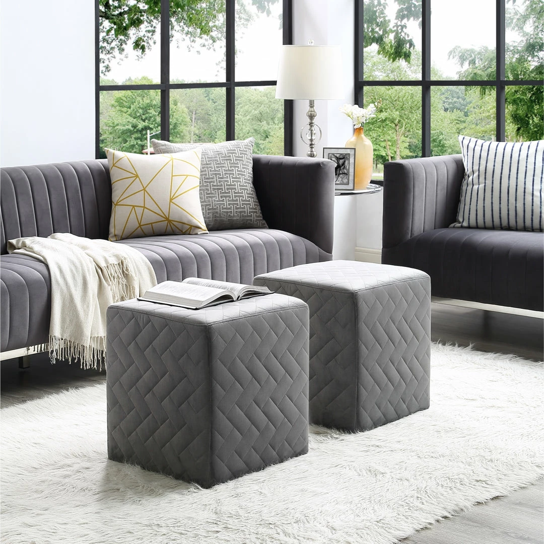 - MODERN DESIGN – Modern style velvet upholstered ottoman with its straight clean lines match perfectly with any decor theme. Use this design to kick your feet up while watching the game, or cluster four together for a convertible coffee table. Sold as 1 piece