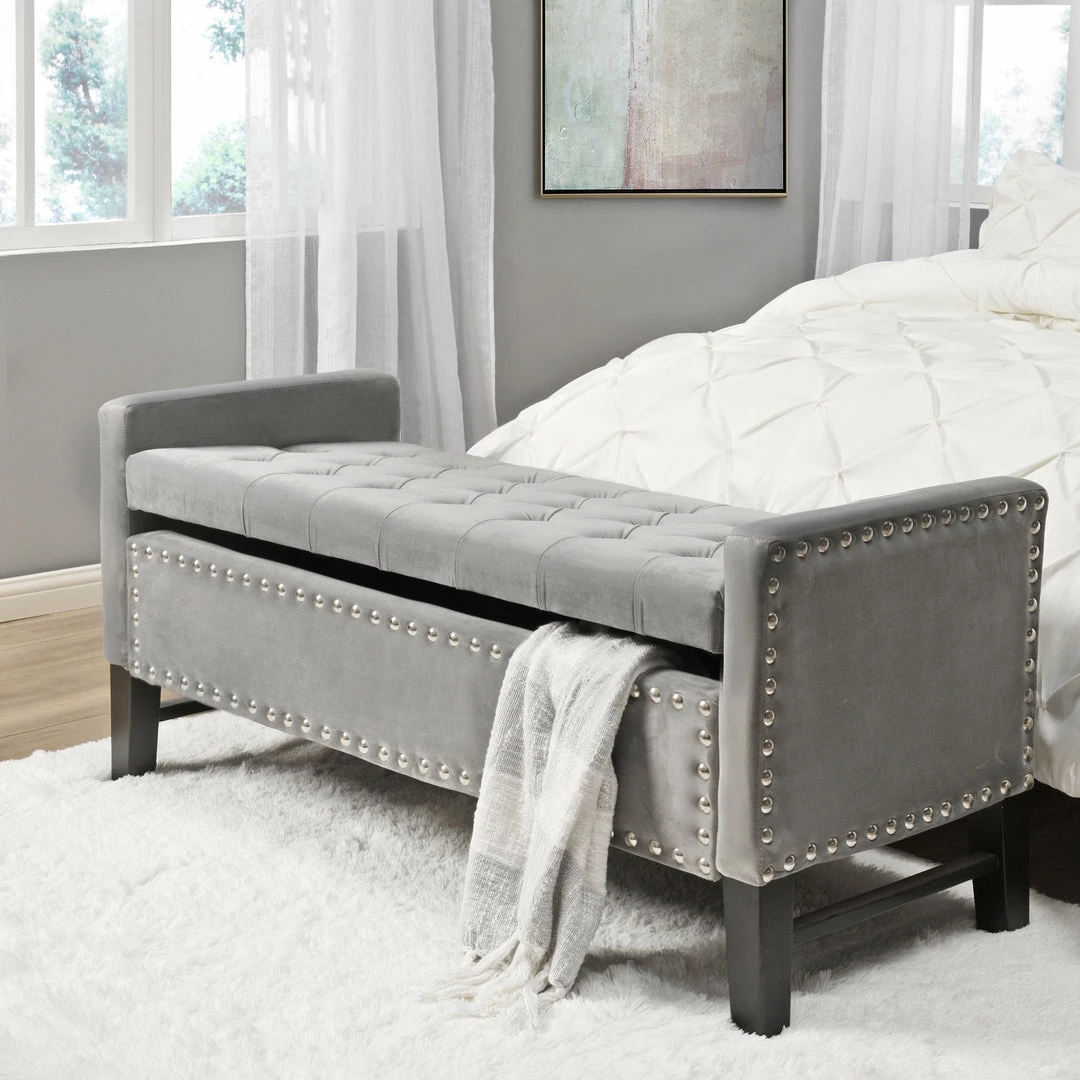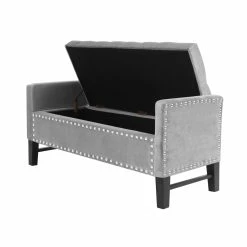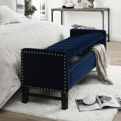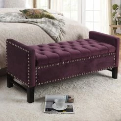 - ELEGANT DESIGN – Traditional style Storage Bench w/Modern appeal, Handcrafted Upholstered tufting with soft velvet fabric, Stylish Solid birch legs.