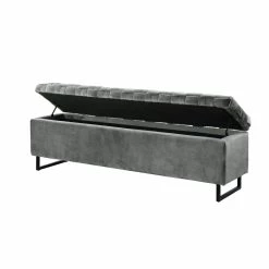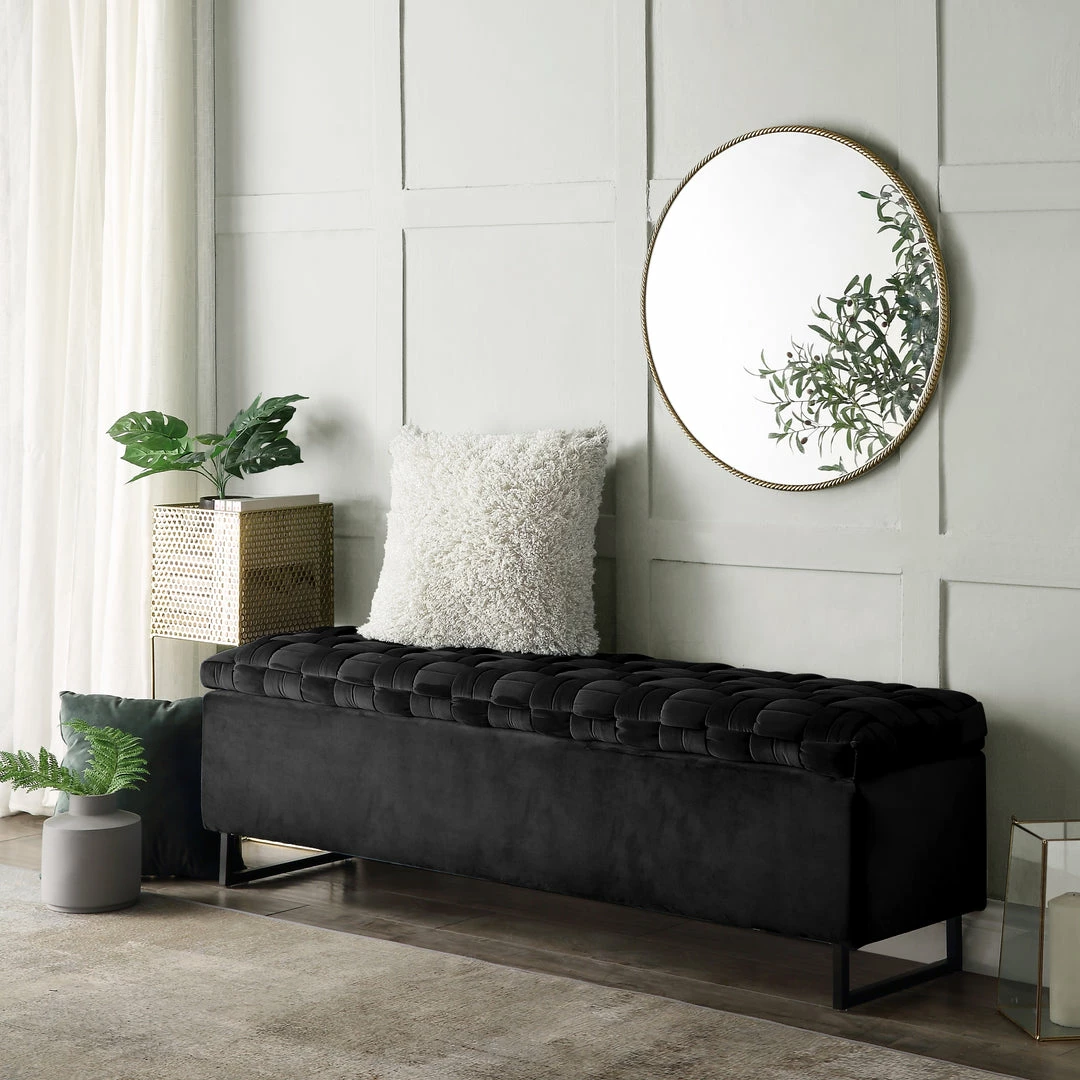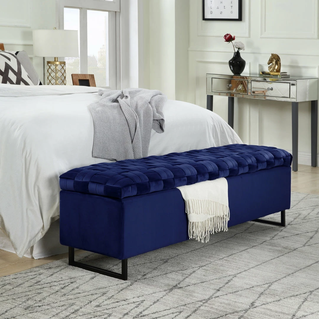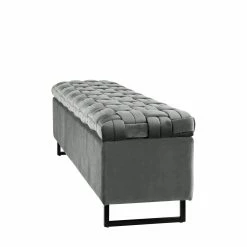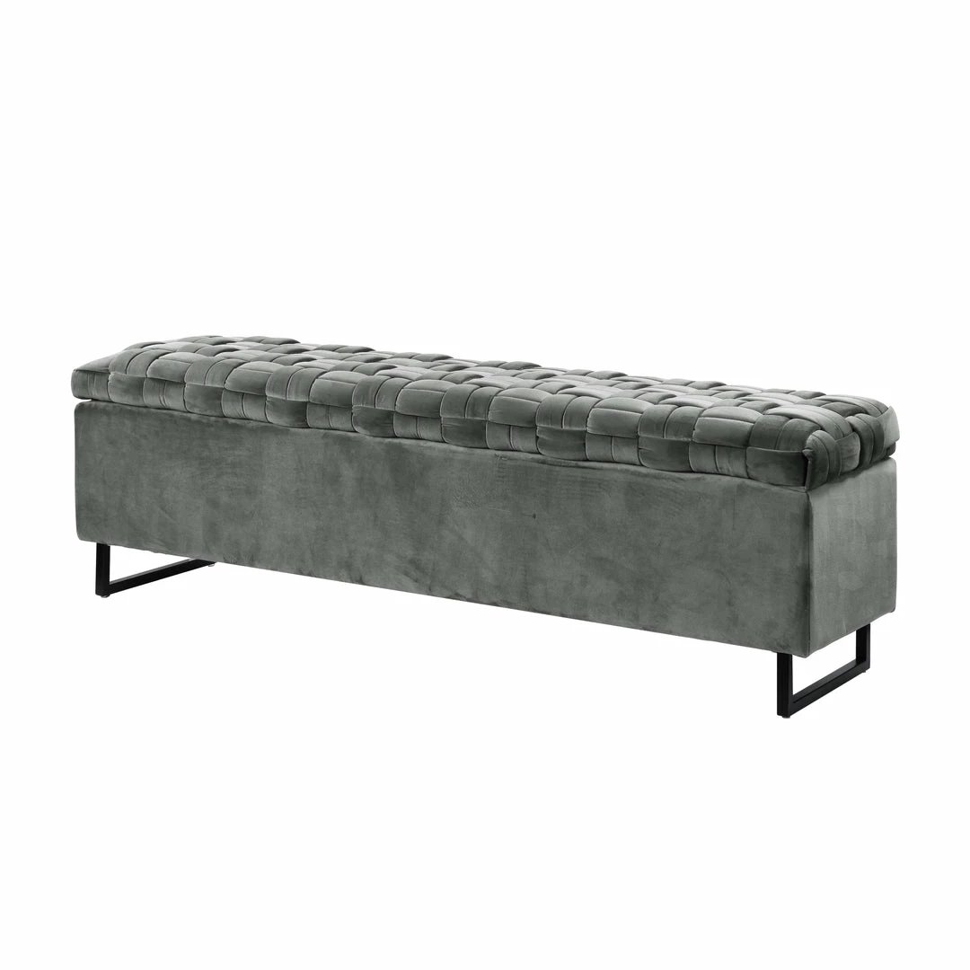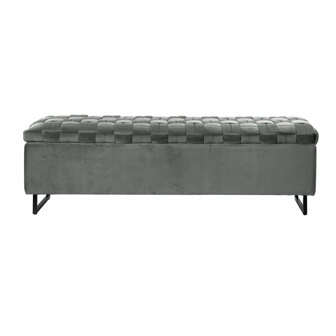 - MODERN AND CHIC – Velvet upholstered bench with rich and intricate basket weave detail, featuring a sleek matte metal base to serve as comfy seating and functional storage space at the same time.
