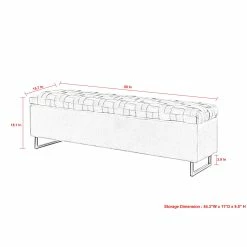- DIMENSIONS – Overall – 59”L x 15.7”W x 18.1”H. Storage dimension – 54.3”W x 11”D x 9.5”H.