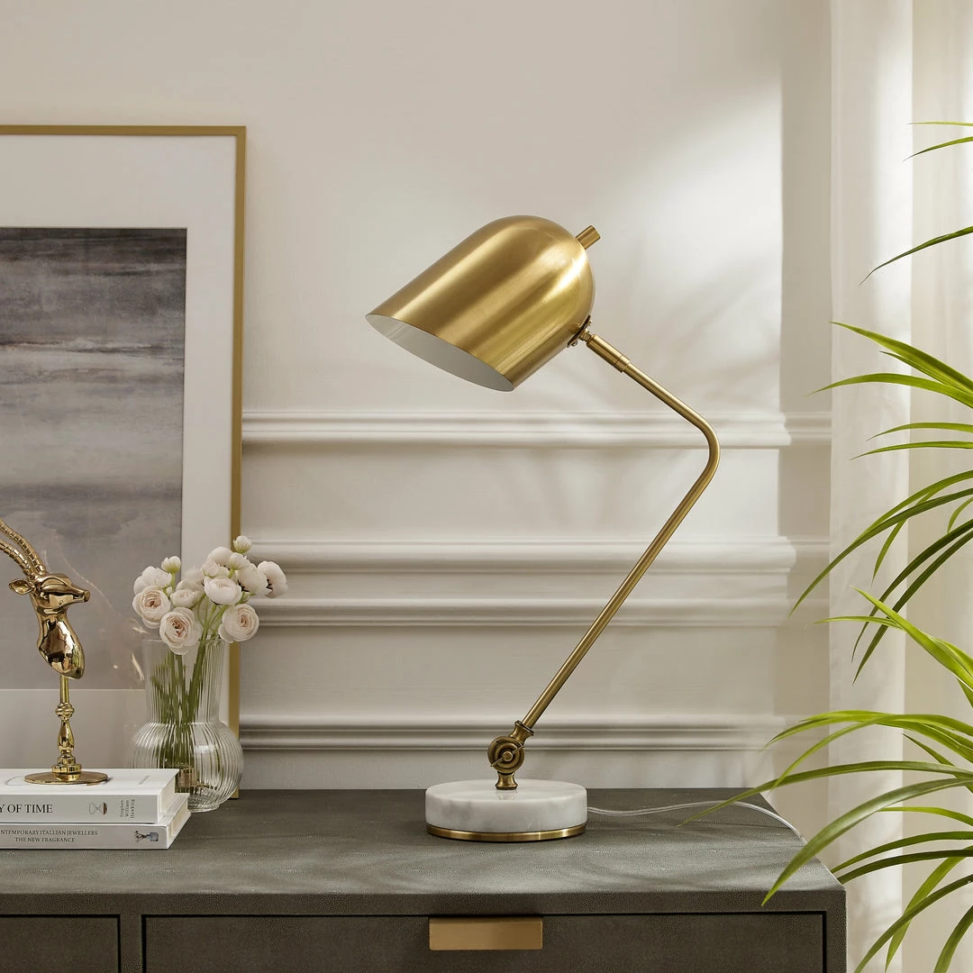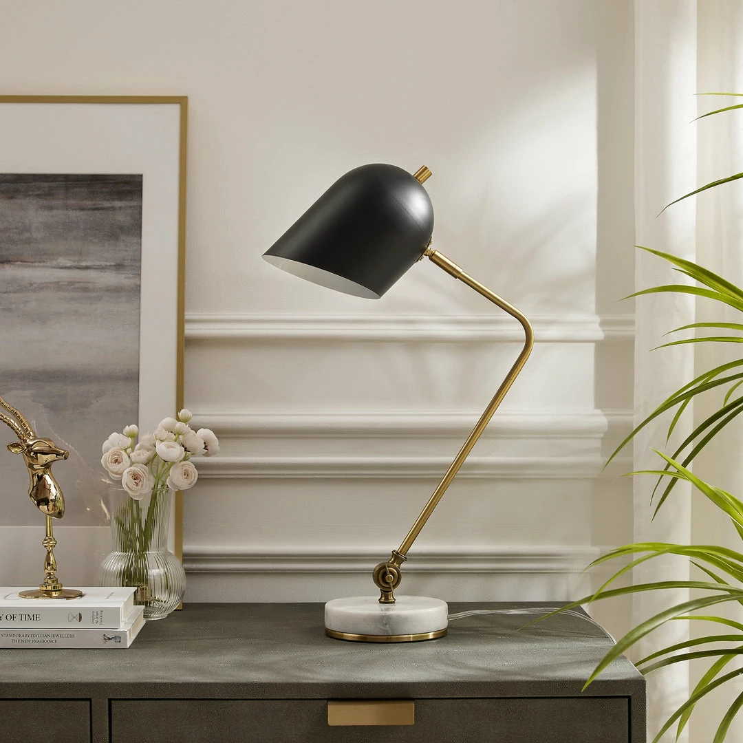 - STUNNING DESIGN – Minimalist but stunning design creates a fusion of modernity and convenience. 100-watt bulb illumination supported by an adjustable sturdy metal frame and sculpted marble base for that elegant look and function.