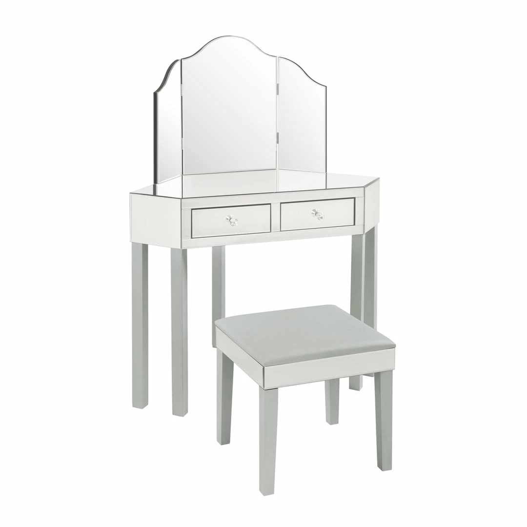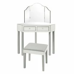 - SPACE SAVER – Our brand new corner vanity/desk with tri-fold mirror is a compact and functional item. Its corner design maximizes space and serves a variety of functions.