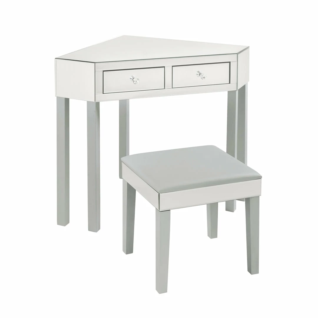 - ELEGANT DESIGN – Our trendy corner vanity set adds Hollywood glamorous glow to any room. The mirrored finish will catch the light beautifully and create a sparkly look in your bedroom, living room, makeup room