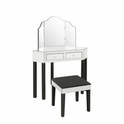 • SPACE SAVER – Our brand new corner vanity/desk with tri-fold mirror is a compact and functional item. Its corner design maximizes space and serves a variety of functions.