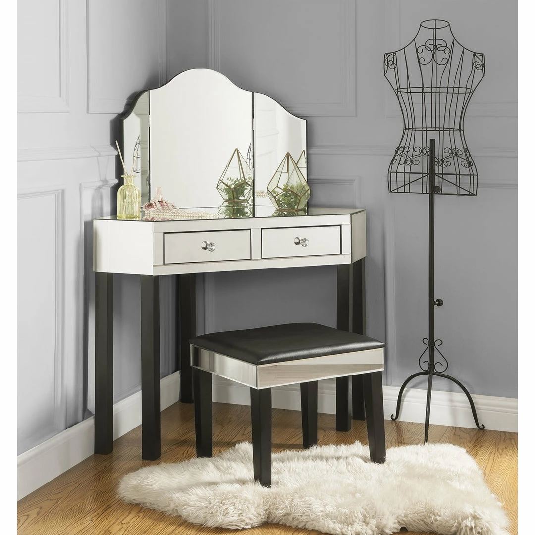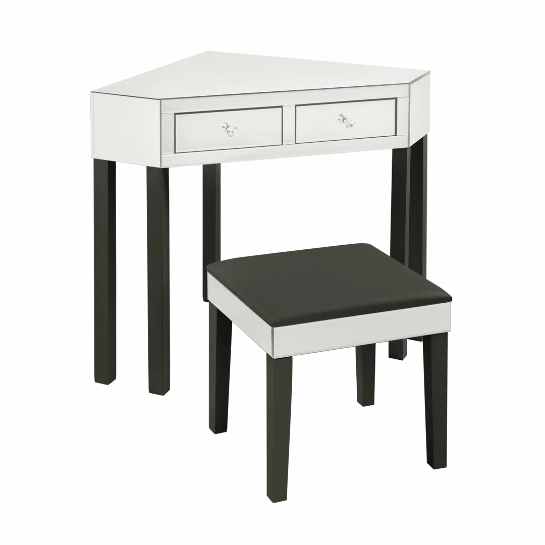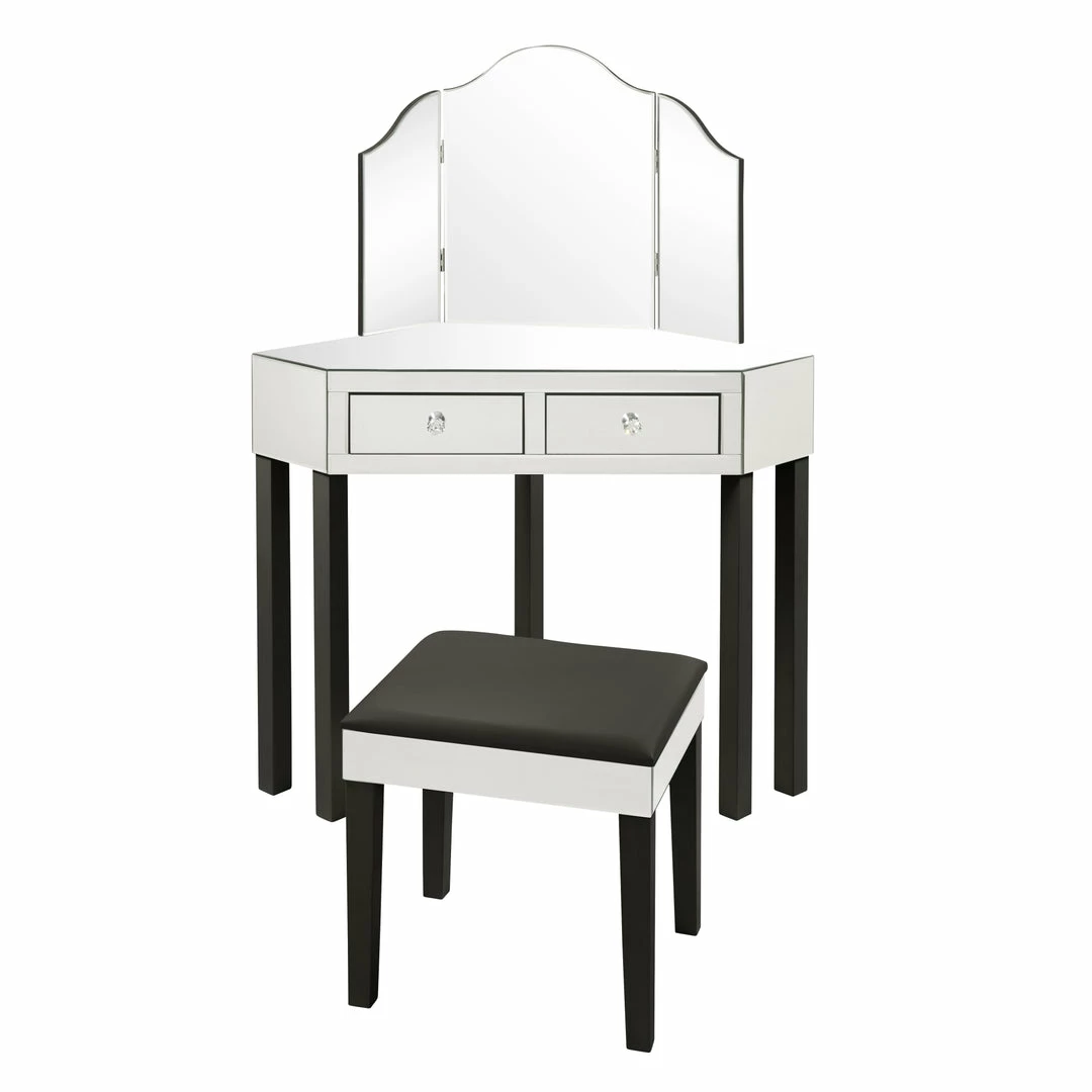 • ELEGANT DESIGN – Our trendy corner vanity set adds Hollywood glamorous glow to any room. The mirrored finish will catch the light beautifully and create a sparkly look in your bedroom, living room, makeup room