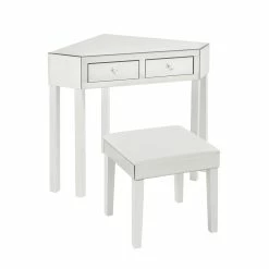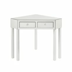 • ELEGANT DESIGN – Our trendy corner vanity set adds Hollywood glamorous glow to any room. The mirrored finish will catch the light beautifully and create a sparkly look in your bedroom, living room, makeup room.