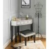 • DIMENSIONS – Vanity – 28″L x 28″W x 30.7″H; Stool – 17.7”L x 14.9”W x 16.9”H; Drawers interior – 10”W x 9.1”D x 3.3”H.