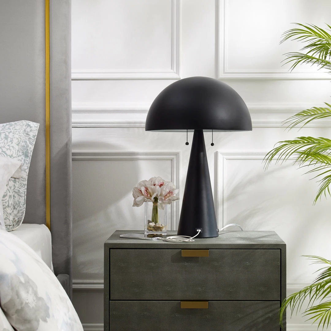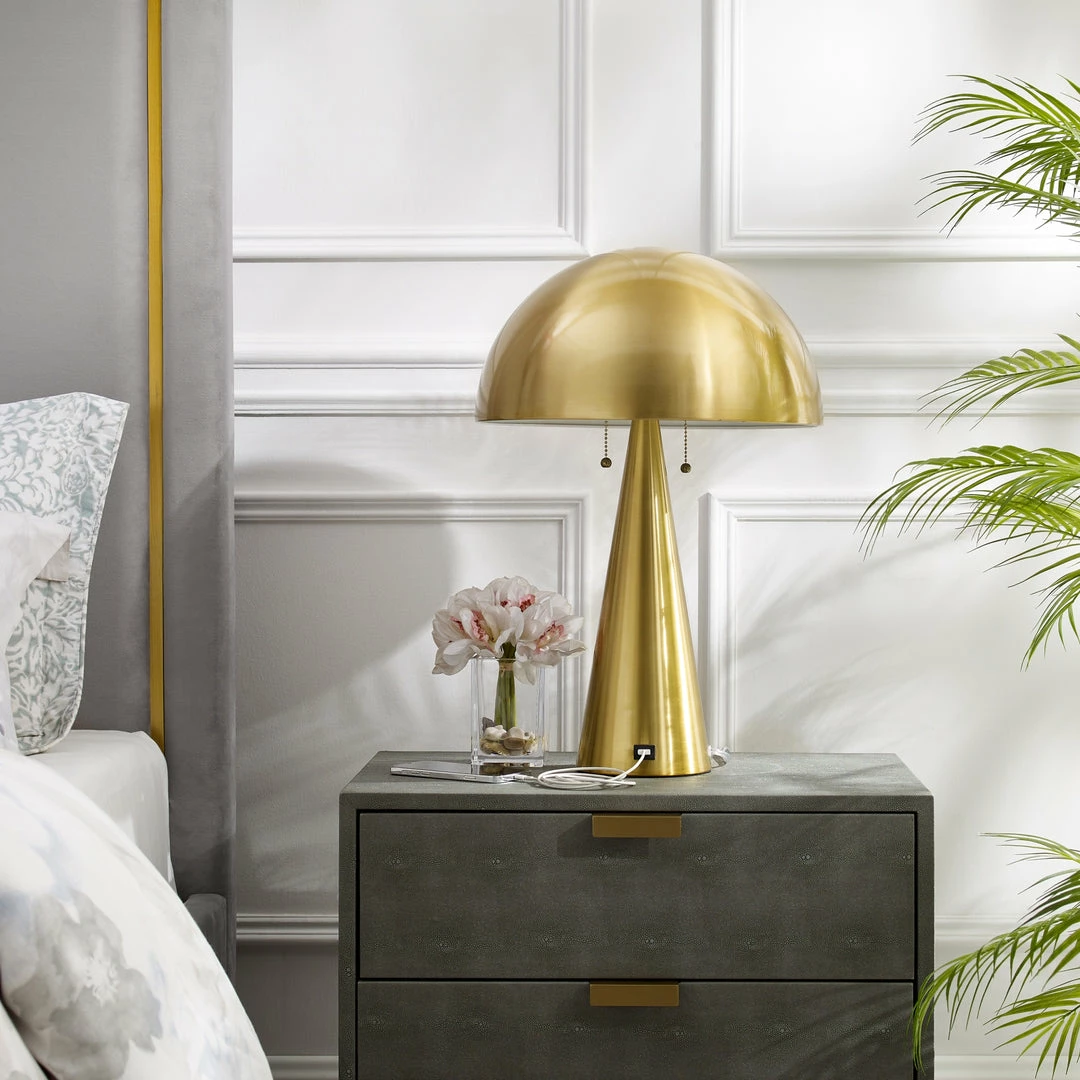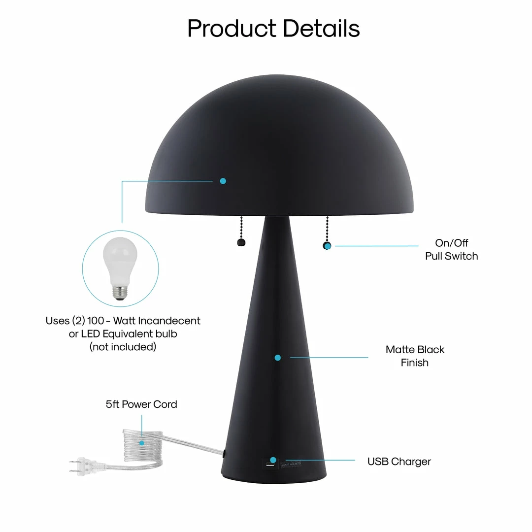 - COASTAL LUXE VIBE – Contemporary mushroom design with a USB port will add a modern and timeless look to any room decor. The rich metal solid finish blends harmoniously with your bedroom, study room, dorm room, and living room décor.