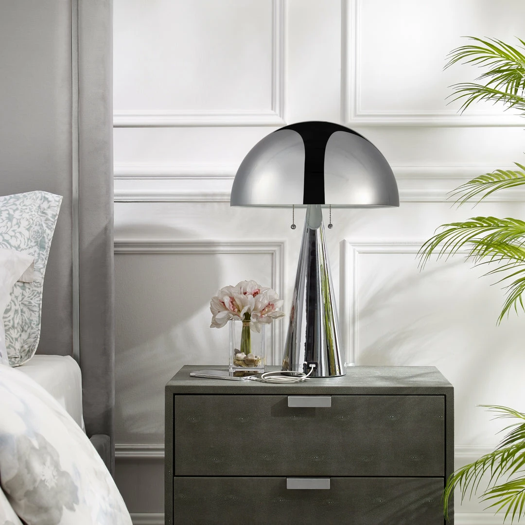 - DESIGNER LIGHTING – Contemporary accent lamp in stunning mushroom design creates a fusion of modernity and convenience. Two 100-watt bulbs’ illumination complemented by a sleek solid finish provides an elegant look and convenient function.