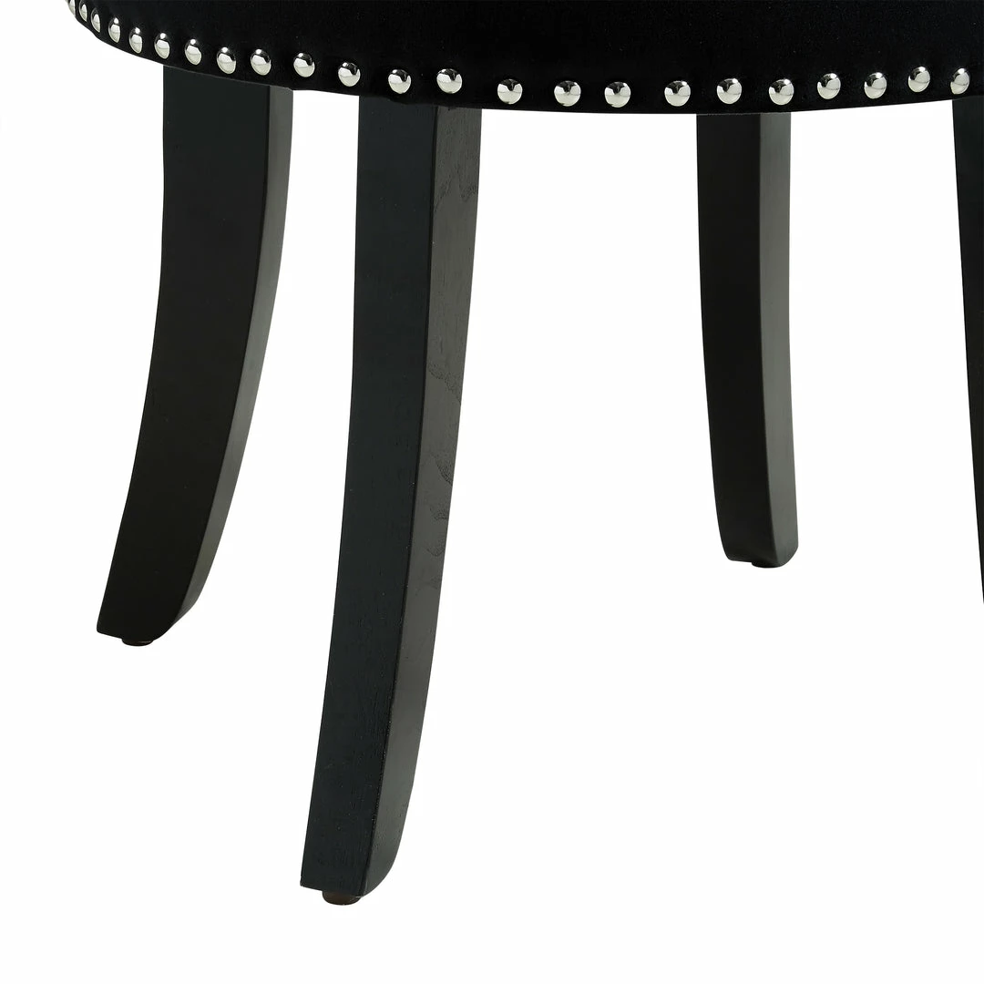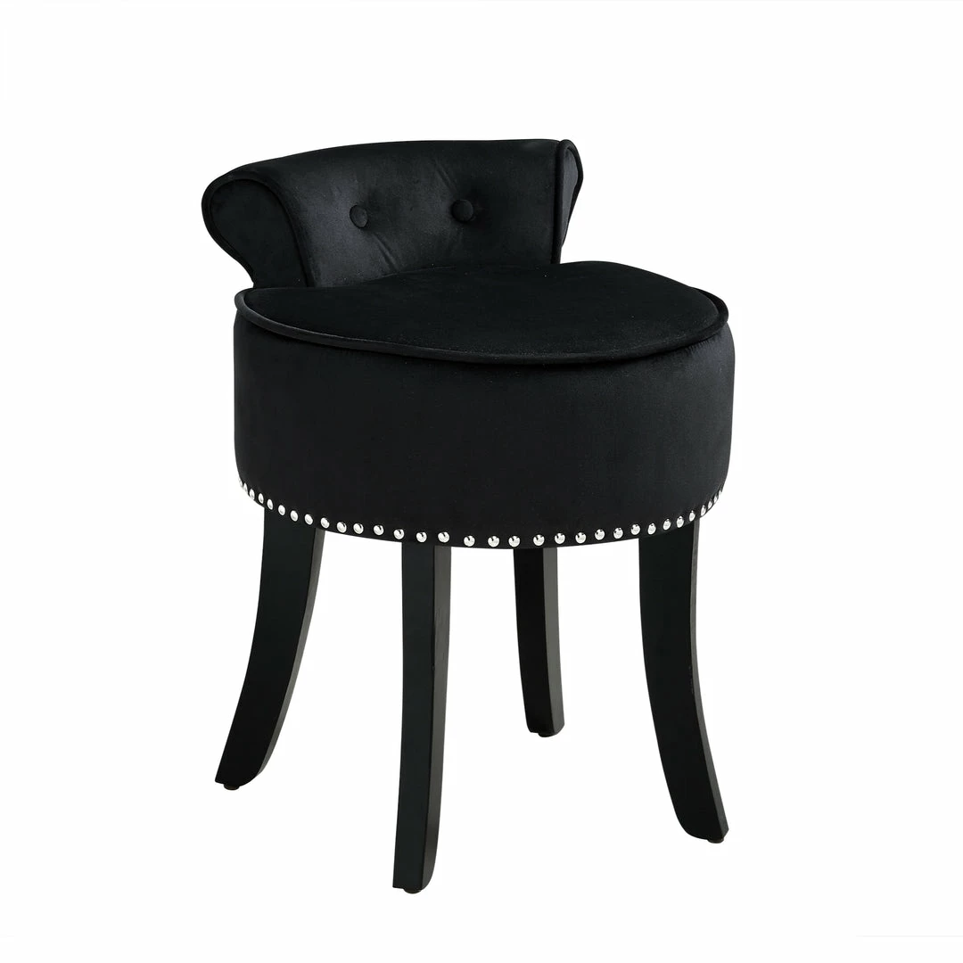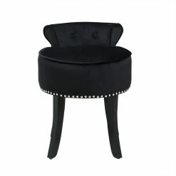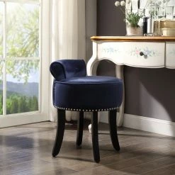 Our velvet vanity stool is the perfect little piece for any décor. It adds a gentle sophistication in the confines of your living room, bedroom or entryway. Featuring a button tufted rolled back, high density foam cushioned seat and silver decorative nail head trim with solid birch legs, this elegant accent piece provides both functionality and a focal point of color and style that seamlessly blend with your main furniture to create a dynamic and cozy interior space to come home to.