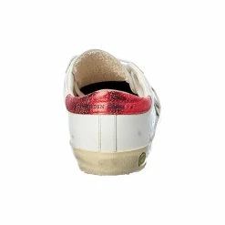 - Superstar Leather Sneaker In White And Metallic Red Leather With Distressed Design