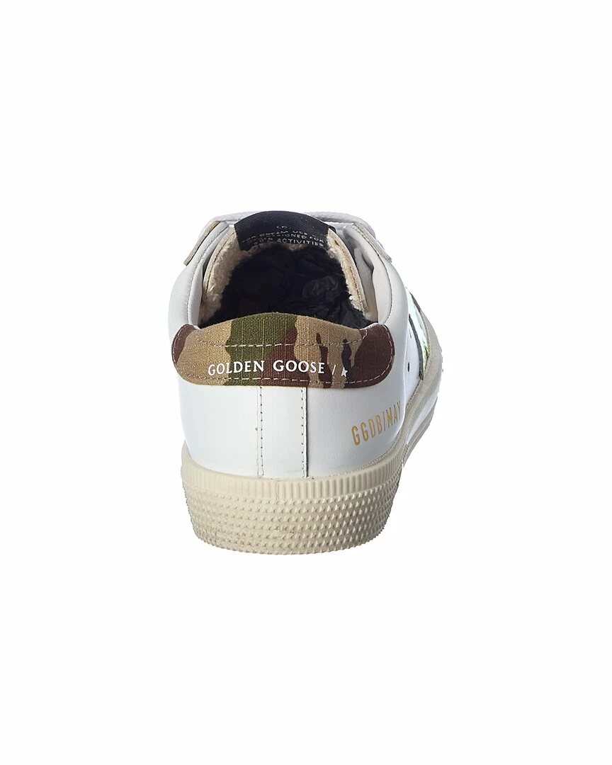 - Superstar Leather Sneaker In White Leather With Camo Canvas Heel And Star Patch
