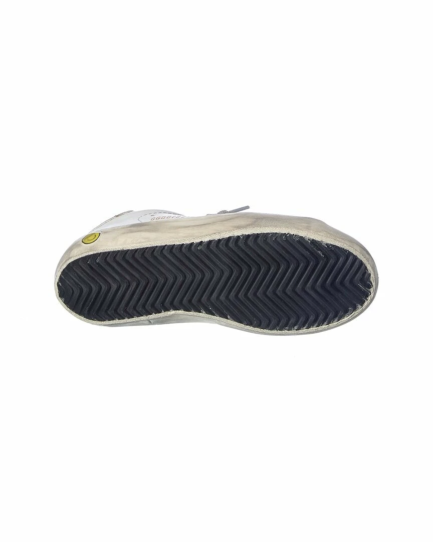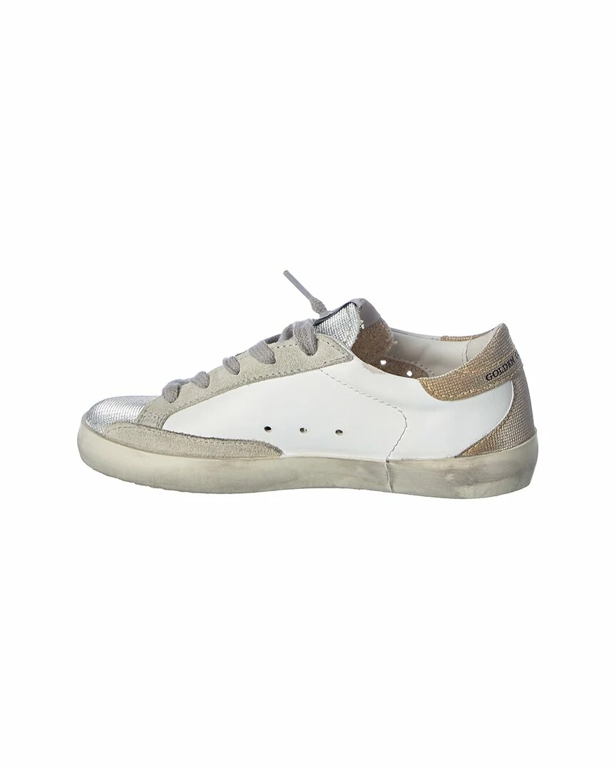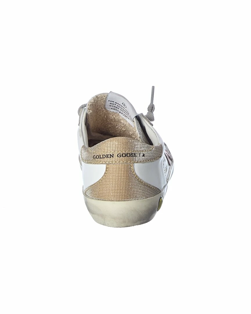 - Superstar Leather Sneaker In White And Shimmering Metallic Leather With Star Patch