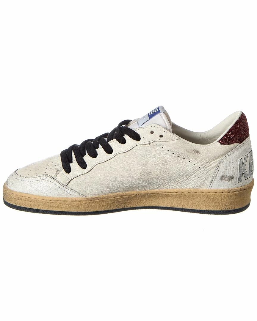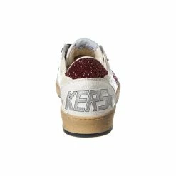- Ballstar Leather & Glitter Sneaker In White Leather And Burgundy Glitter With Distressed Design