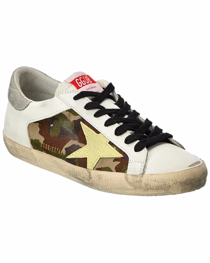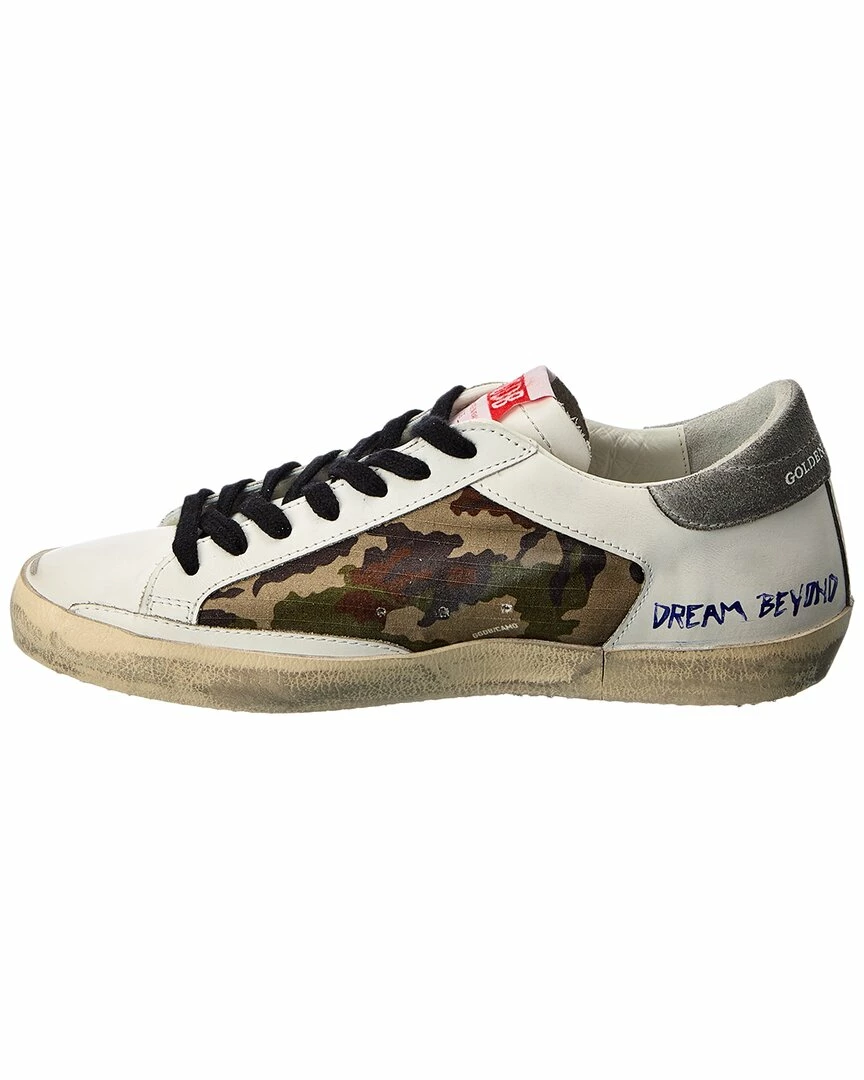 - Superstar Canvas & Leather Sneaker In Green Camo Canvas And White Leather With Distressed Design