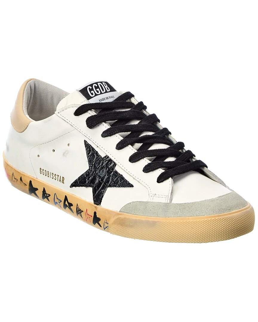 - Superstar Penstar Leather & Suede Sneaker In White Leather And Suede With Distressed Design, Drawn-On Detailing And Croc-Embossed Leather Star