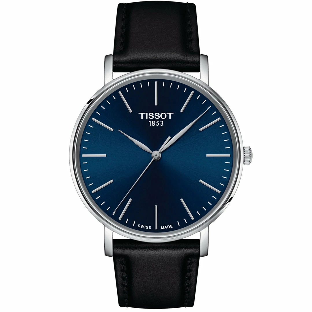 Stainless steel case, Leather strap, Blue dial, Quartz movement, Scratch resistant sapphire, Water resistant up to 10 ATM – 100 meters – 330 feet