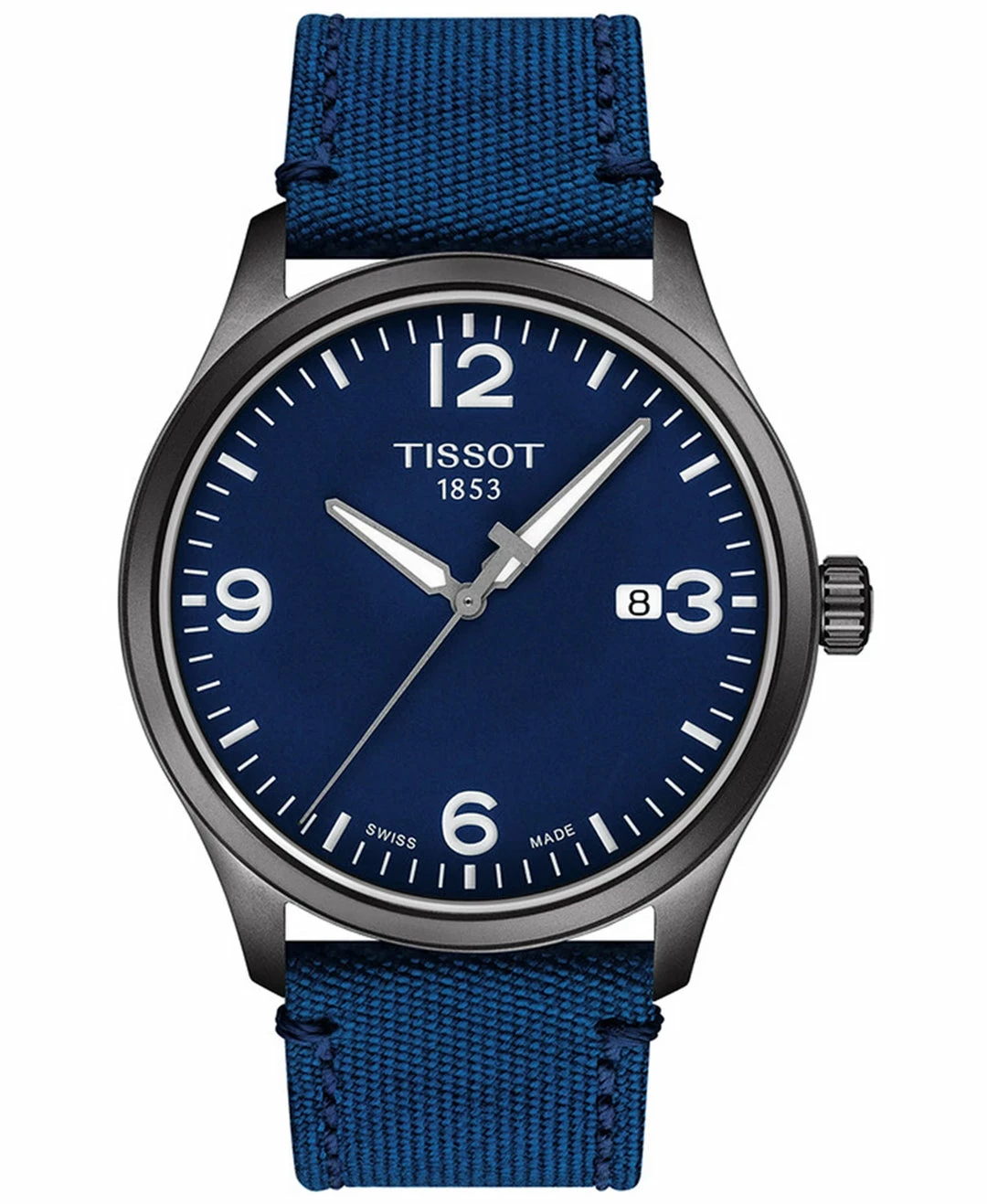 The case is made of durable Stainless Steel. The case width is 42mm and the dial is protected by a Sapphire Crystal Scratch Resistant. It’s water resistant up to 100 m (330 feet). The Strap is Blue Fabric and the dial is Blue. The movement is Quartz.