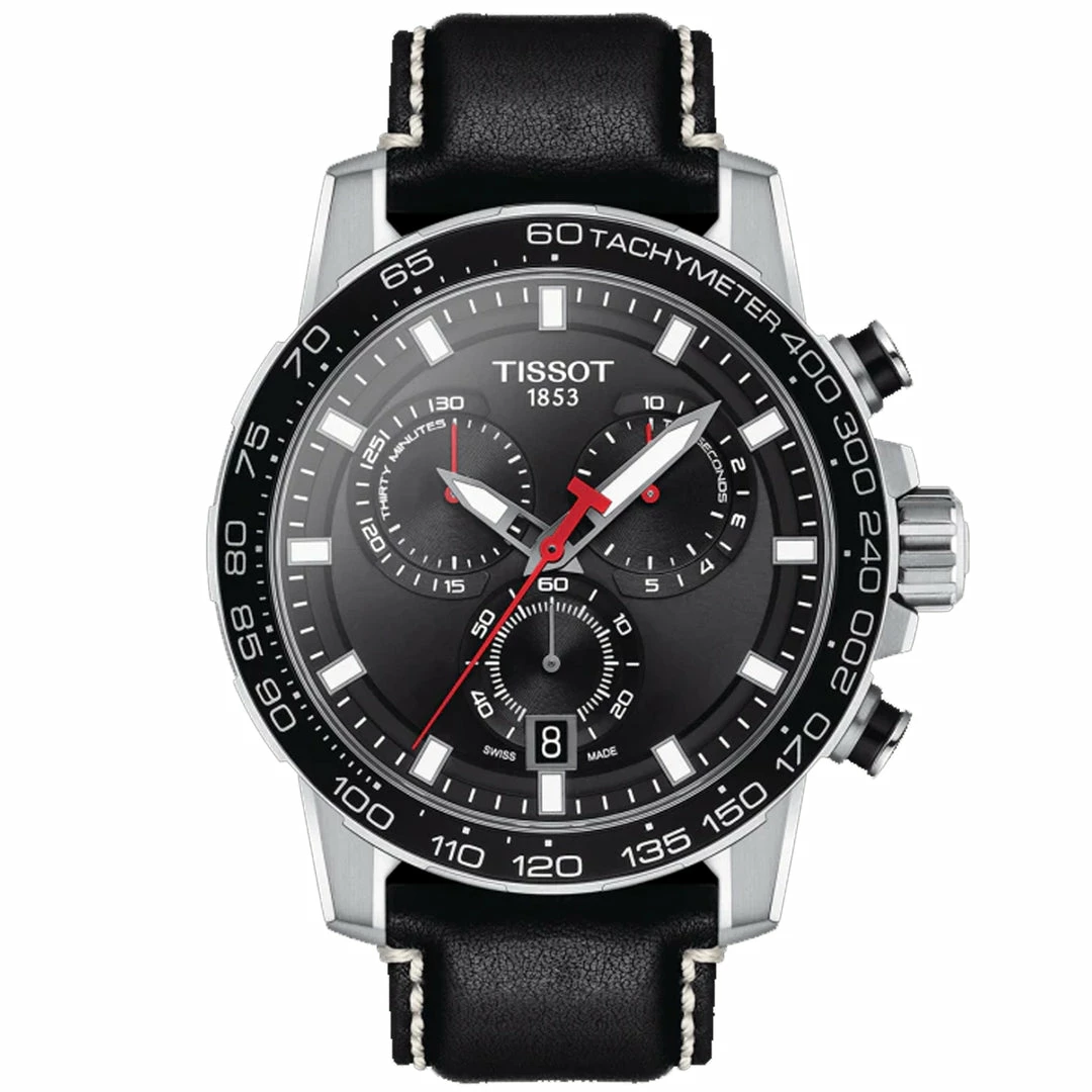 Stainless steel case, Leather strap, Black dial, Quartz movement, Scratch resistant sapphire, Water resistant up to 10 ATM – 100 meters – 330 feet