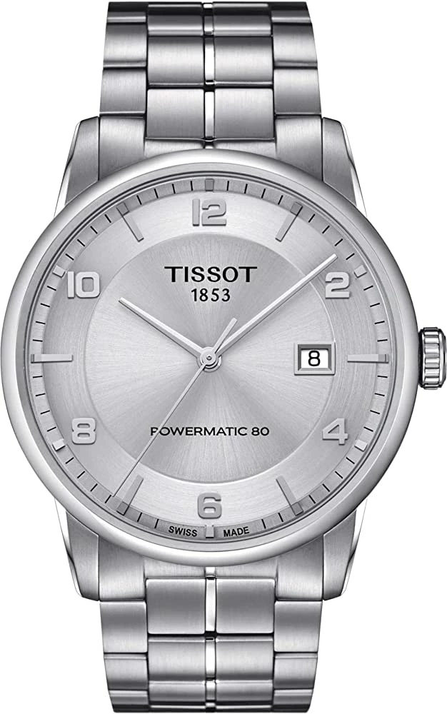 The case is made of durable Stainless Steel. The case width is 41mm and the dial is protected by a Sapphire Crystal Scratch Resistant. It is water resistant up to 50 m (165 feet). The Bracelet is Silver Tone Stainless Steel and the dial is Silver. The movement of this timepiece is Automatic. (T0864071603700)