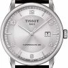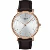 The case is made of durable Stainless Steel. The case width is 30mm and the dial is protected by a Sapphire Crystal Scratch Resistant. It is water resistant up to 50 m (165 feet). The Strap is Brown Leather and the dial is Silver. The movement of this timepiece is Automatic. (T1285051601200)