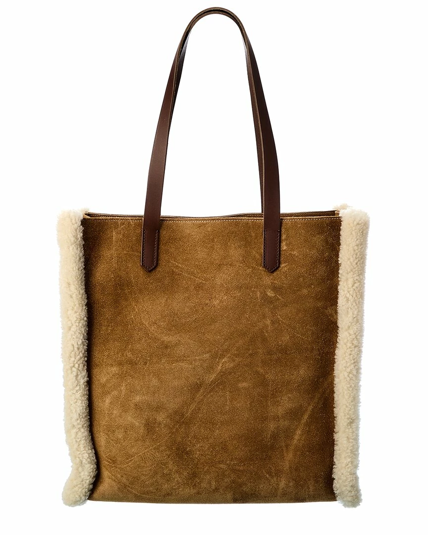 - California North-South Suede & Shearling Tote In Brown Suede And Shearling With Gold-Tone Hardware